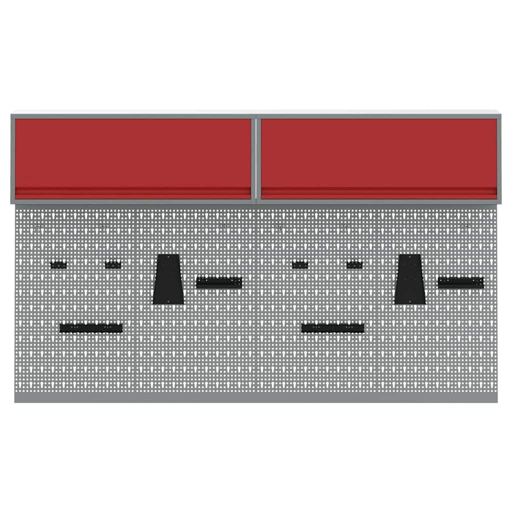 Tahle všestranná nástěnná skříňka na nářadí a souprava desek je nutnost, pokud chcete mít ve své dílně nebo garáži pořádek. S elegantním industriálním designem přináší městský nádech díky práškově lakované ocelové konstrukci a hladkému šedému povrchu. Určená do vnitřních prostor, skříňka skvěle uskladní nářadí, které bude přehledně a snadno dostupné. Integrovaná deska také zvyšuje funkčnost, protože umožňuje přizpůsobit si uspořádání nářadí podle vlastních potřeb.