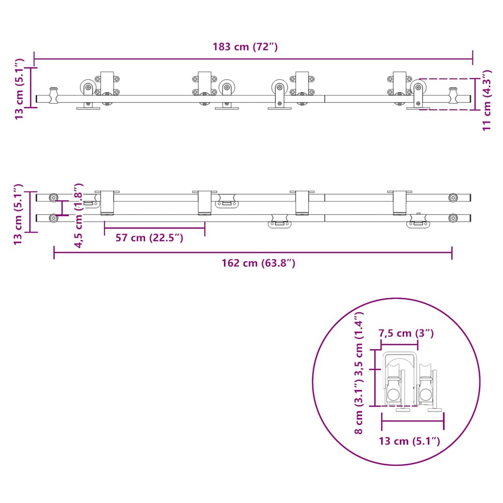 Sada příslušenství pro posuvné dveře 183 cm nerez ocel stříbrná