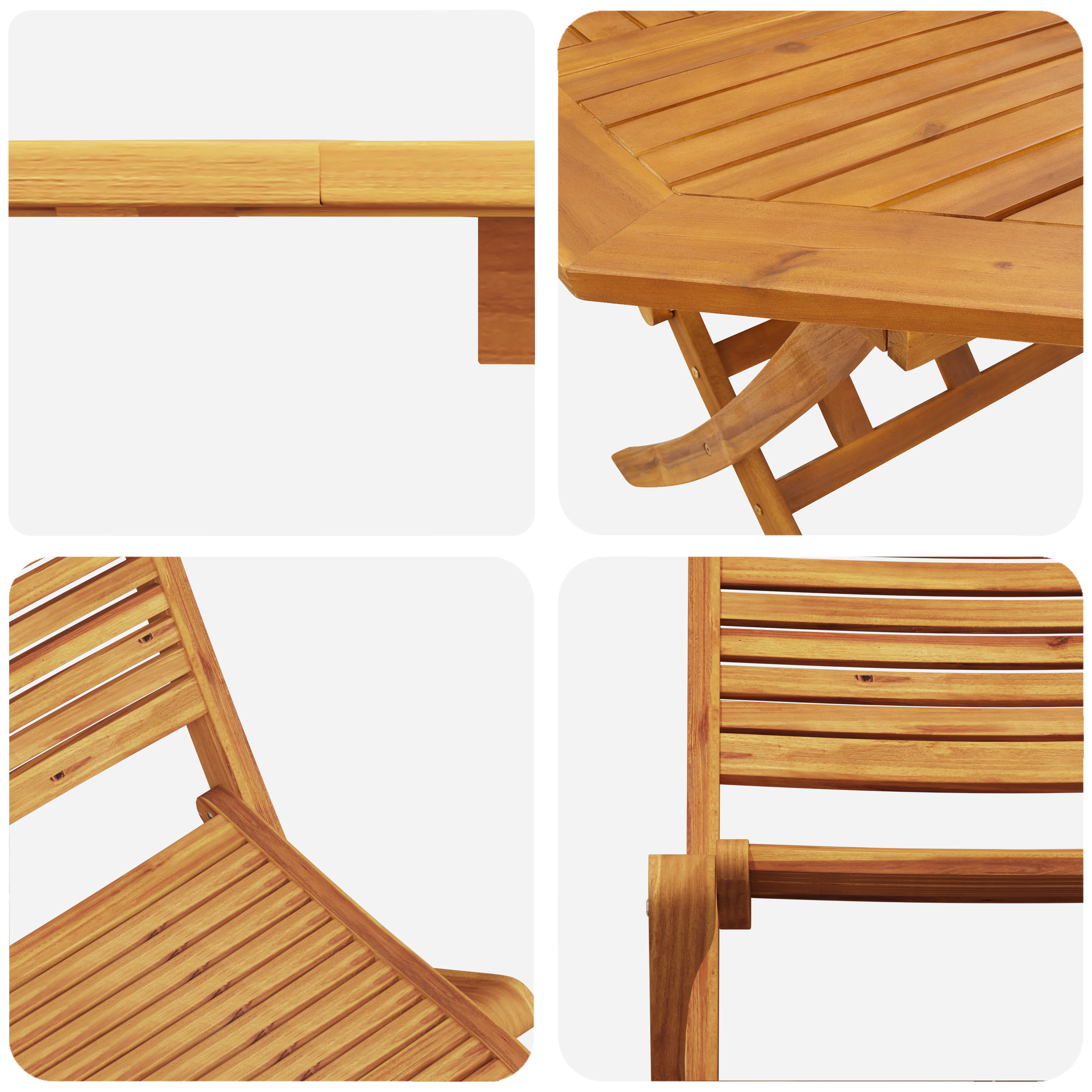 Tento rustikální skládací bistro set vnáší do každého venkovního prostoru šmrnc elegance. Pečlivě vyrobený z masivního akáciového dřeva, set je nejen hezký, ale taky praktický. Rustikální styl spojuje krásu s užitečností, takže je skvělej pro zahrady a terasy. S přirozeným povrchem vás zve k odpočinku a užívání si ve svých oblíbených venkovních místech.
