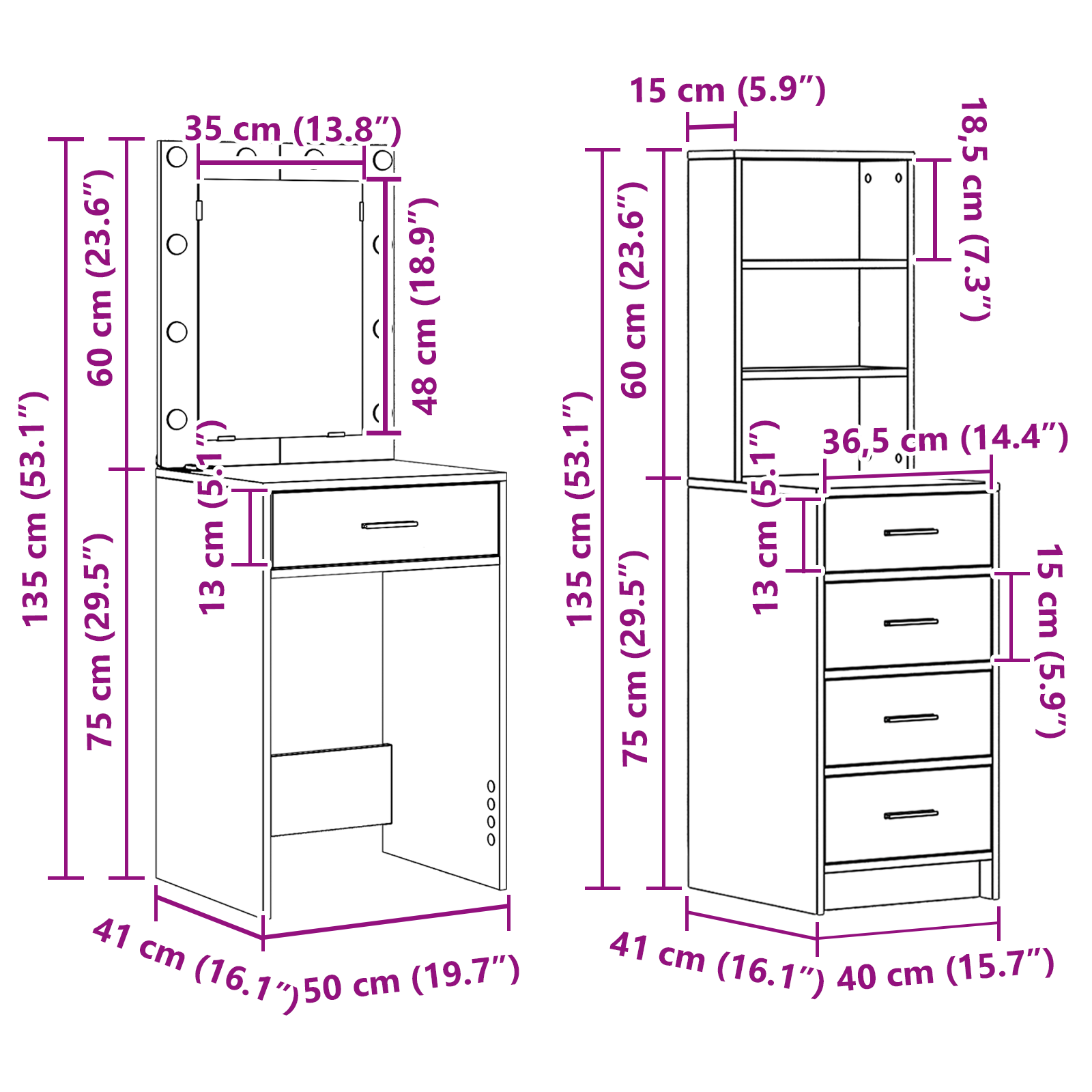 • Celkové rozměry: 50 x 41 x 135 cm (D x Š x V)