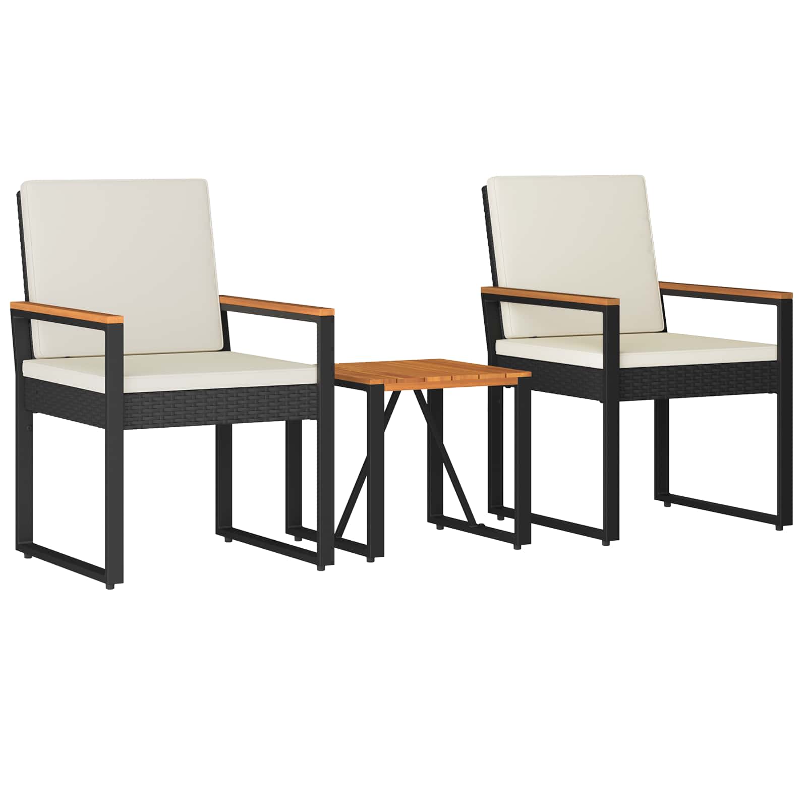 Sada venkovního nábytku 3 pcs Černá a krémově bílá polyratan