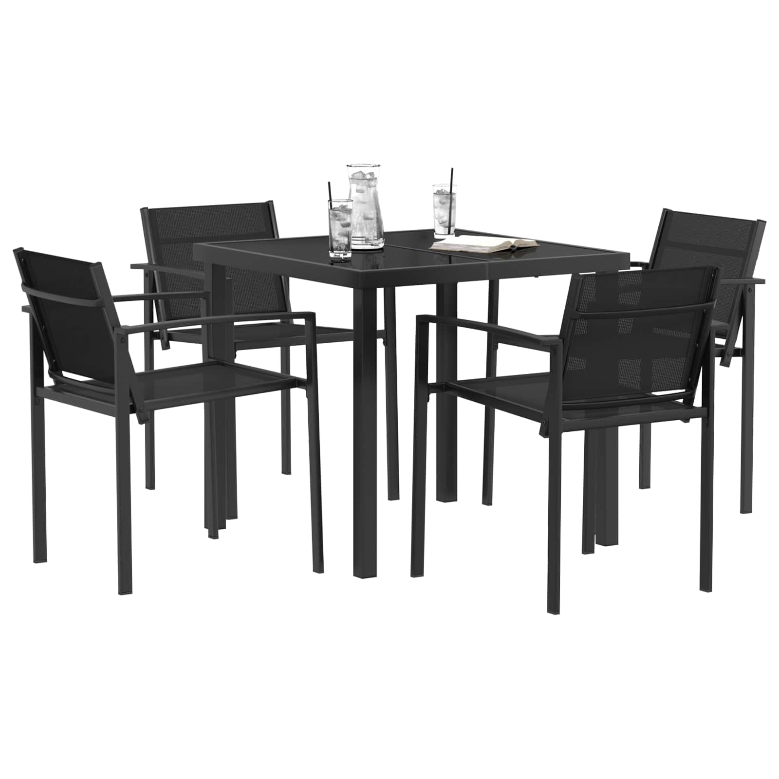 • Tvrzené sklo na stole S elegantním tvrzeným sklem na stole nabízí set snadno udržovatelný povrch ideální pro stolování nebo zábavu venku. Sklo dodává nádech elegance a zajišťuje bezpečnost a trvanlivost, ideální pro dlouhodobé používání.