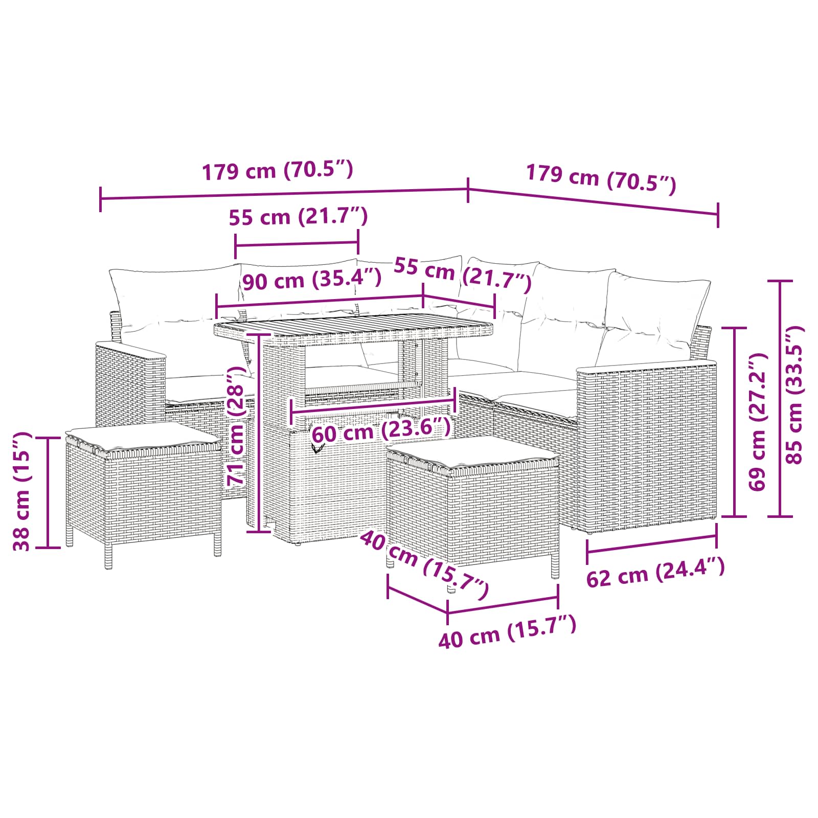 Tento modulární zahradní gaučový set představuje moderní design, který spojuje univerzálnost a jednoduchost. Je navržen, aby zkrášlil jakýkoli venkovní prostor, a hrdě se pyšní pevnými, ale atraktivními prvky, co zvládnou jarní a letní rozmary. Díky modularitě si uživatelé můžou uspořádání pohodlně přizpůsobit podle potřeby. S příjemnými liniemi a moderním estetikem se set skvěle hodí do rozlehlých relaxačních zón i útulných koutů.