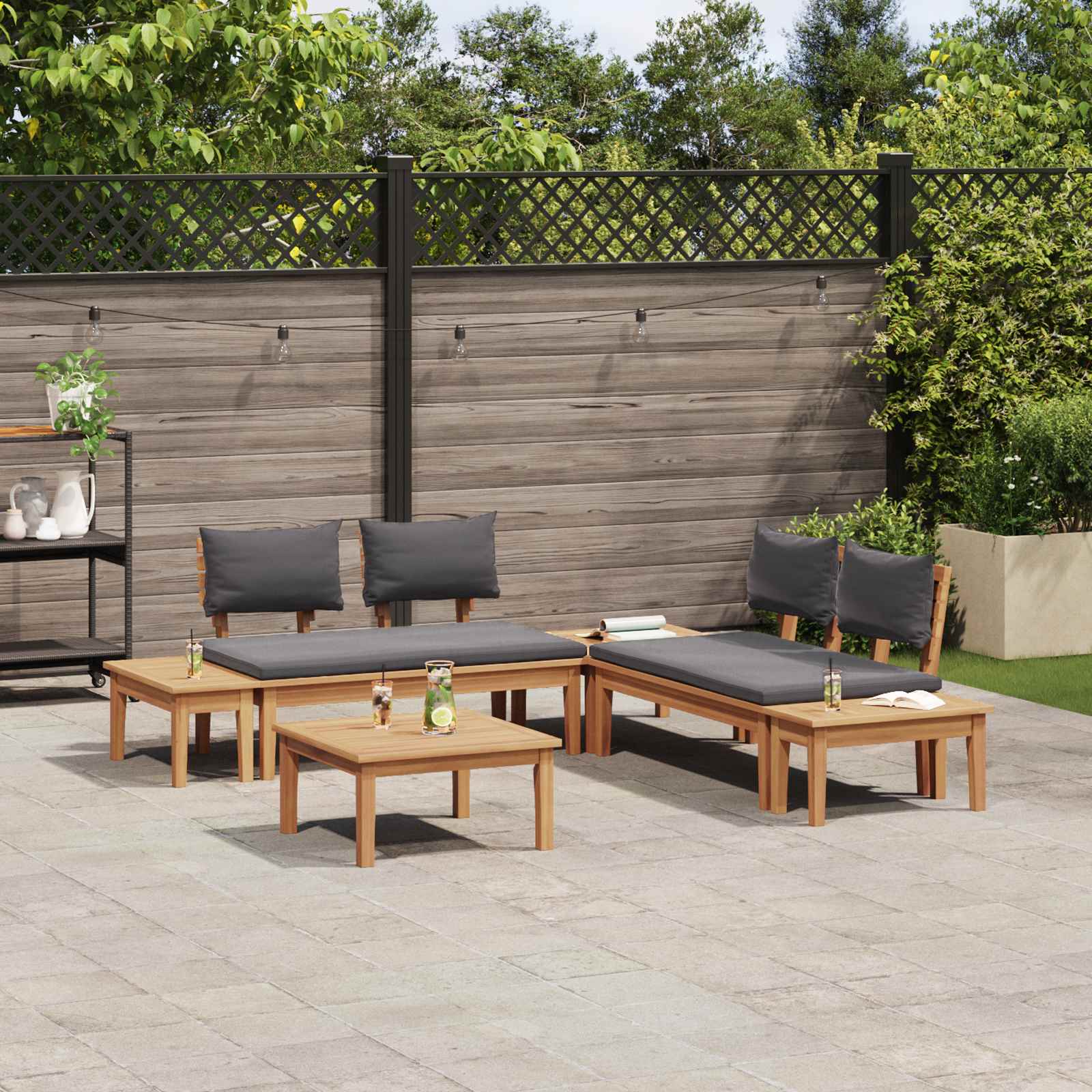 Tento moderní zahradní pohovkový set je super přídavkem do vaší zahrady nebo na terasu. Nabízí kombinaci funkčnosti a atraktivního designu. S jednoduchými liniemi a příjemným stylem vytvoří klidné místo k sezení, které ocení každý. Ať už plánujete letní grilovačku nebo jste se rozhodli si jen tak lehnout na sluníčku, tenhle set vám zajistí maximální pohodlí a styl. Elegance teakového rámu spolu s měkkými polštáři vás vyzývá, abyste si užili příjemné chvíle venku. Je to univerzální kousek, který vylepší vaši zahradu a vrátí jí šmrnc.