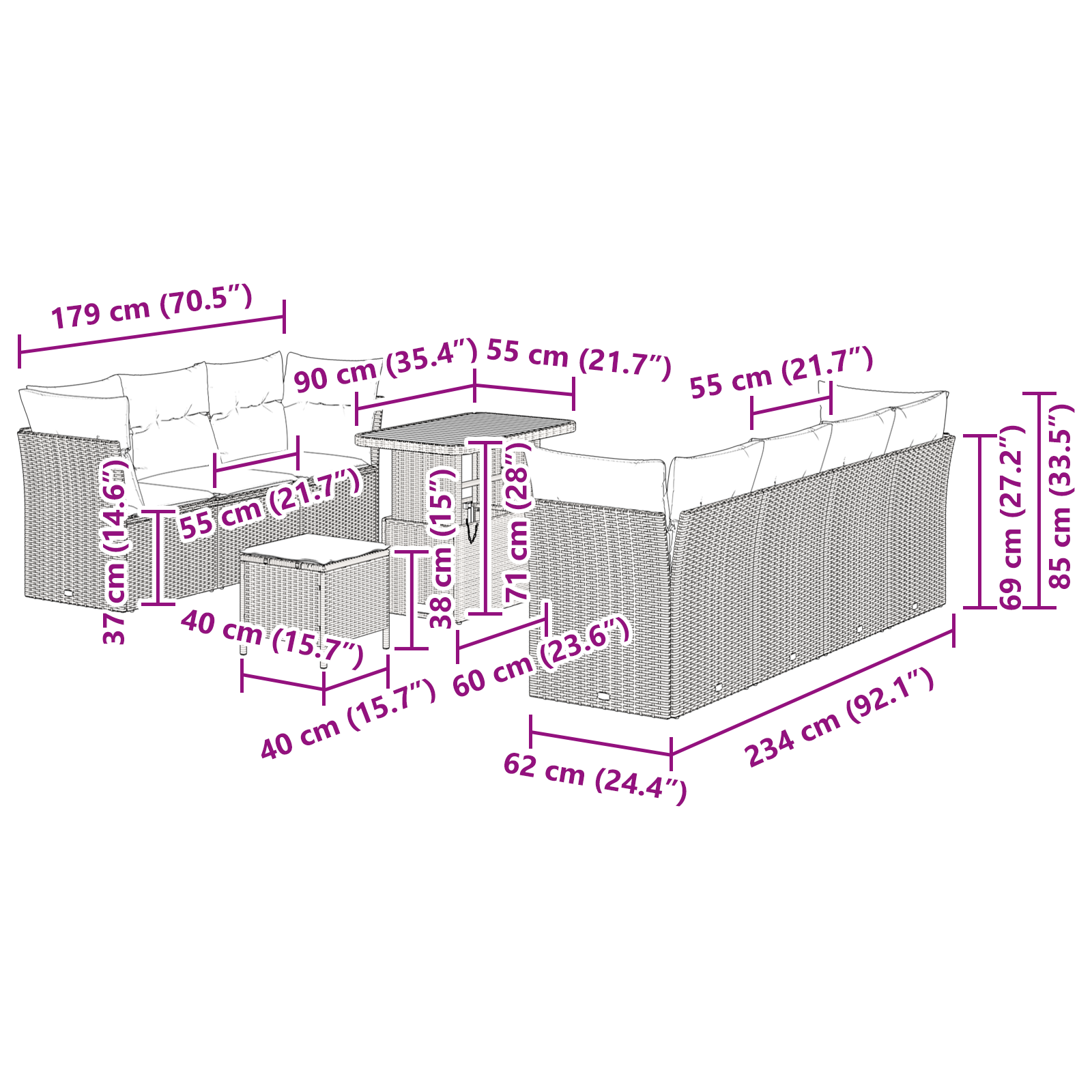 Tento zahradní pohovkový set přináší moderní sofistikovanost díky elegantnímu designu, který zkrášlí jakýkoli venkovní prostor. Spojuje funkčnost s hezkým vzhledem a je ideální pro setkání na zahradě nebo terase. Kombinuje poly ratan s masivním akáciovým dřevem. Jeho barevná paleta skvěle zapadne do otevřených prostor.