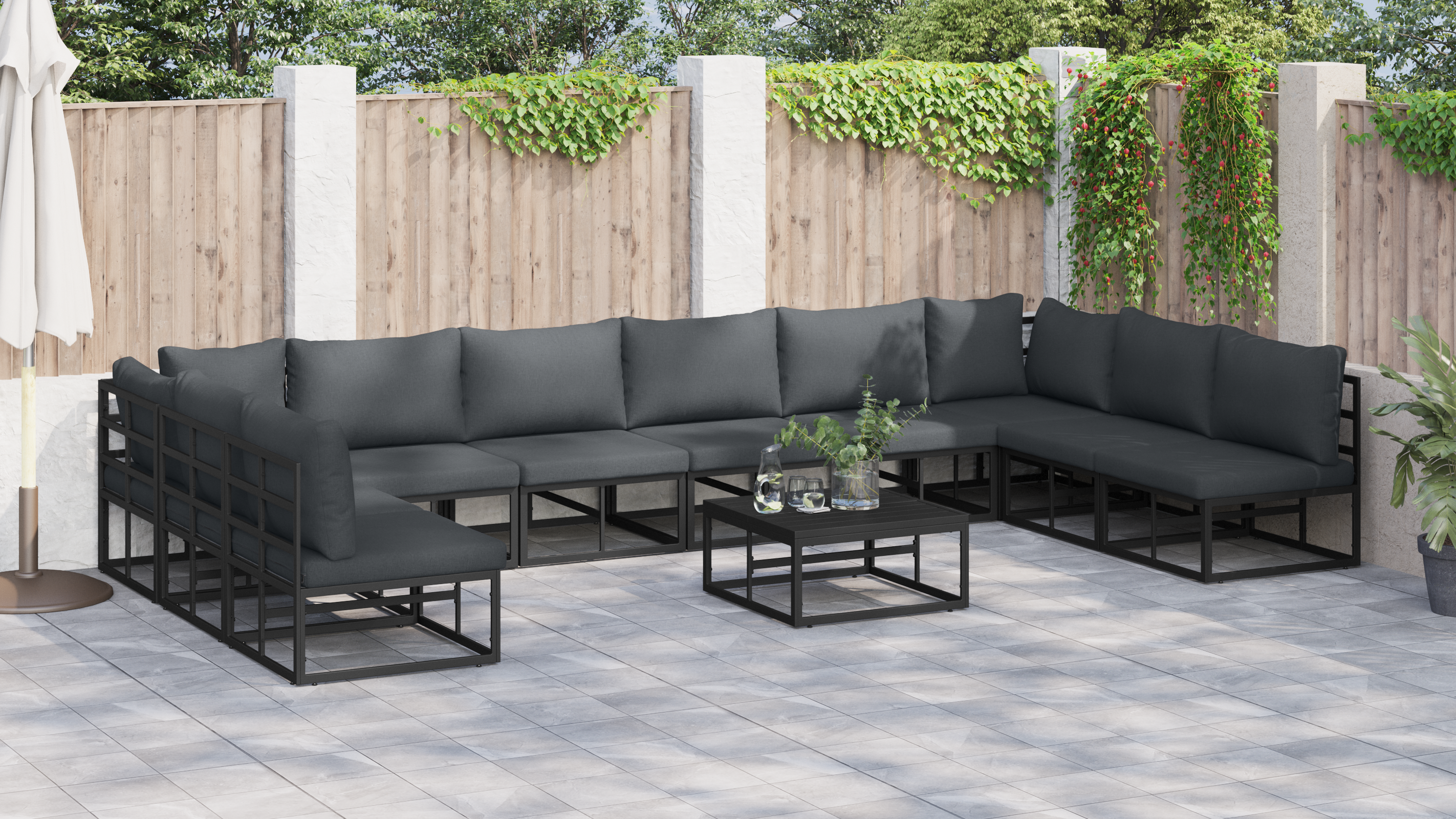 Tento zahradní sofa set přináší do venkovních prostor moderní eleganci a spojuje v sobě formu a funkci. Navržený s důrazem na jednoduchost, nabízí pohodlné sezení pro terasy a zahrady a je ideální pro odpočinkové odpoledne nebo společenské akce.