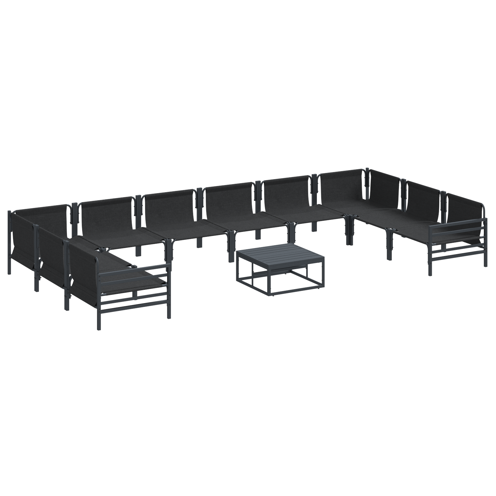 Tenhle moderní zahradní sofa set vypadá skvěle a spojuje funkčnost s estetikou. Může vaši terasu nebo zahradu pořádně oživit. Minimalistické línie a velikost z něj dělají ústřední kousek pro relaxaci a shromáždění. Elegantní černé a antracitové tóny dodávají sofistikovanou atmosféru. S odolným ocelovým rámem a pohodlnými polštáři je ideální pro víc lidí, ať už si chcete užít relaxační odpoledne nebo si pozvat přátele.