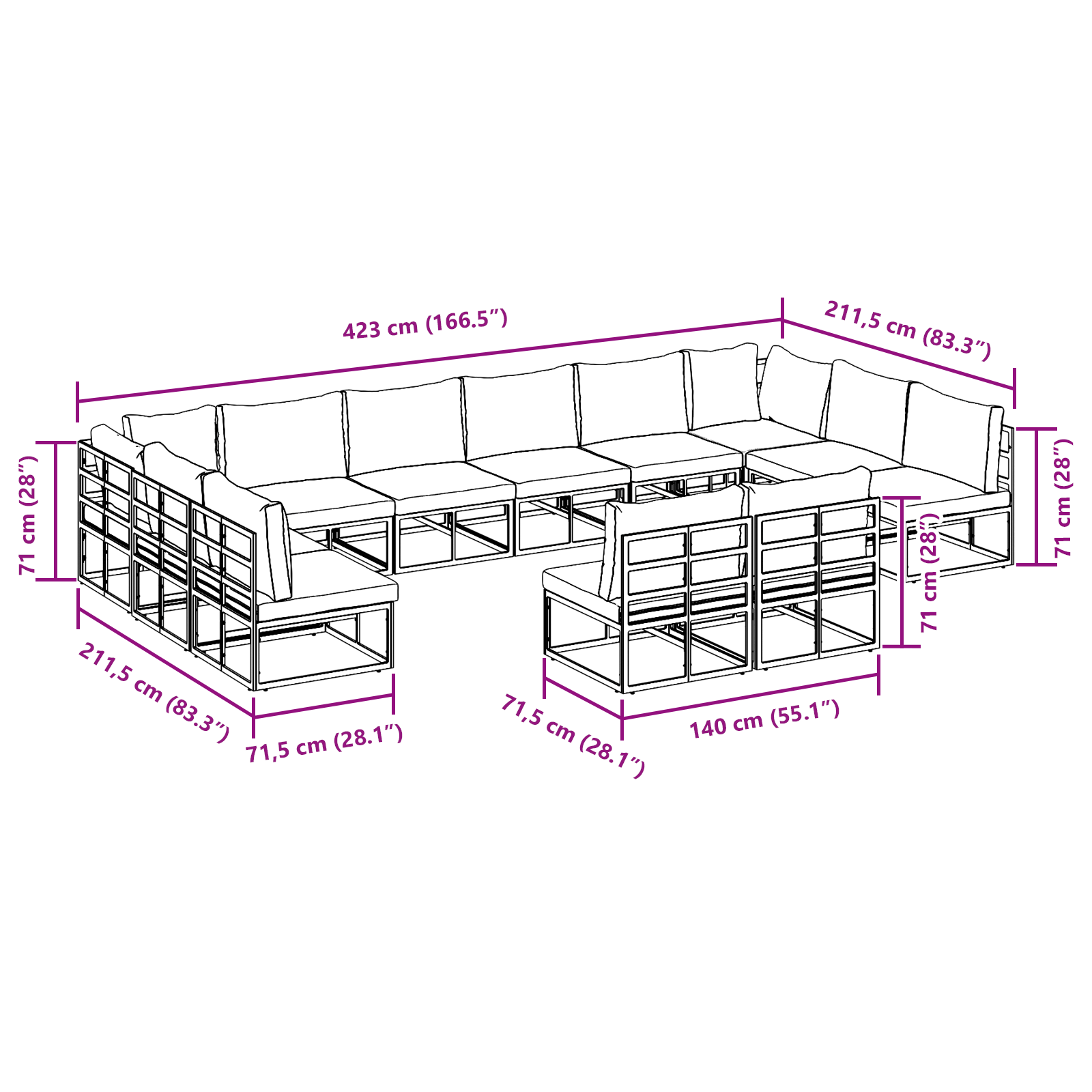 Tento set zahradních pohovek s polštáři kombinuje styl s funkčností. Ideální pro venkovní použití, nabízí pohodlné uspořádání na vaší zahradě nebo terase. Moderní design s čistými liniemi a decentními barvami vytváří skvělý prostor na odpočinek nebo zábavu. Perfektní na jaro a léto, dodá vaši venkovní obytné ploše elegantní a odolný vzhled, který skvěle poslouží na různých shromážděních.