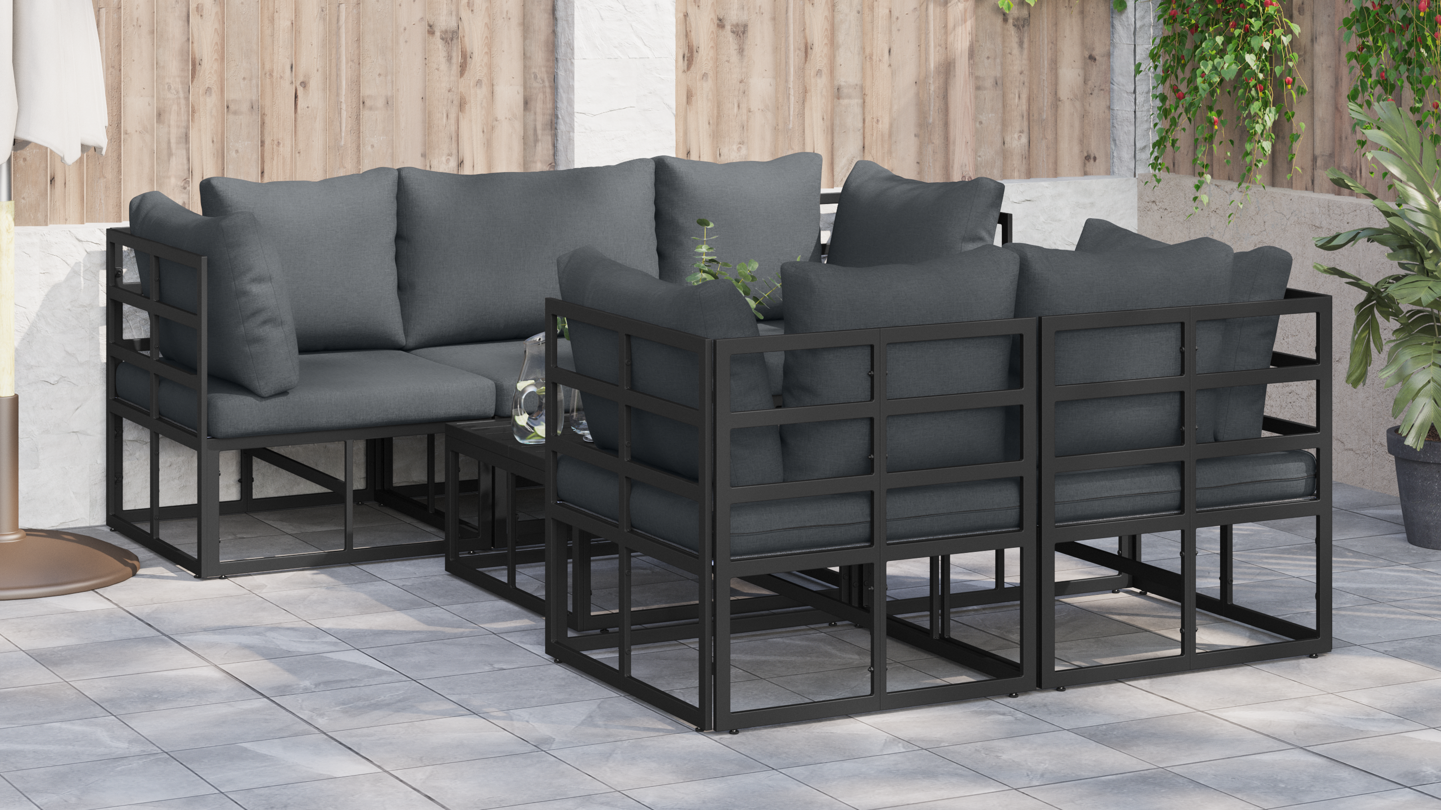 Tento moderní zahradní sofa set přináší do každé venkovní obytné oblasti stylový prvek. Díky svým hladkým liniím a minimalistickému designu se skvěle hodí do jakékoli zahrady nebo na terasu. Poskytuje pohodlné místo pro odpočinek a sociální vyžití s moderním stylem a pevnou konstrukcí, ideální pro ty, co chtějí spojit funkcionalitu s současným vzhledem.