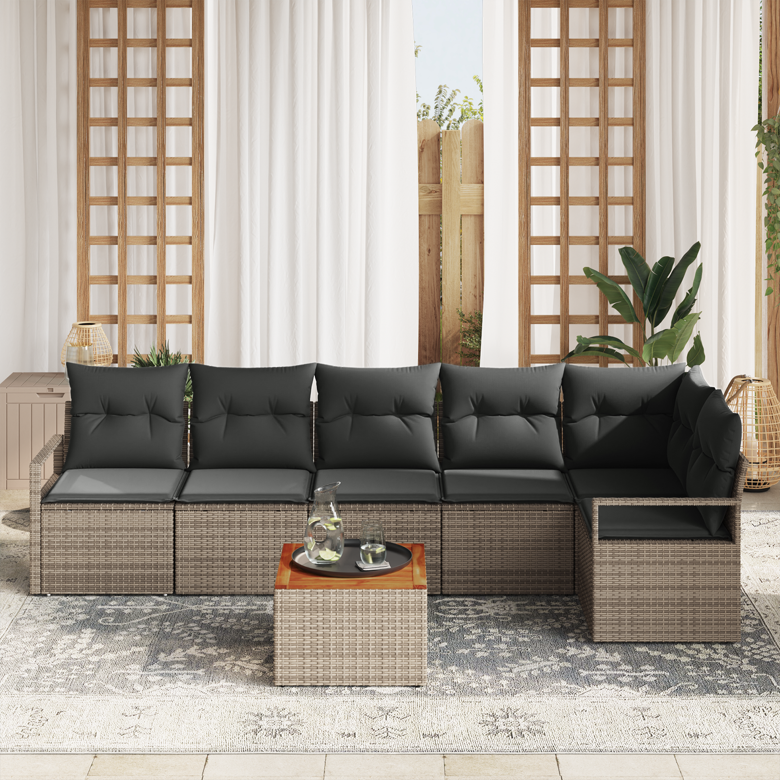 Tahle modulární zahradní sedací souprava spojuje moderní design s funkčností, nabízí super flexibilní uspořádání díky svým modulárním prvkům. Je určená pro venkovní použití a vyniká jednoduchým, avšak elegantním stylem, ideálním pro jarní a letní setkání. Zaručuje pohodlí a styl pro každou zahradu, terasu nebo prostoř.