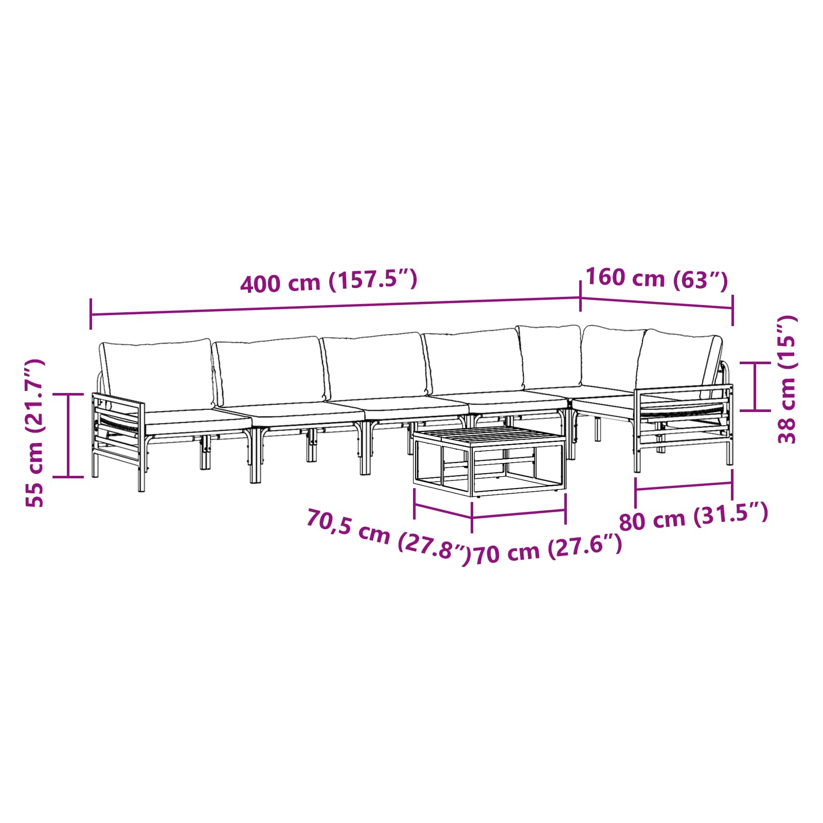 Tato souprava zahradního nábytku skvěle spojuje moderní design s praktickou funkčností, díky čemuž je ideální pro to, abyste přetvořili svůj venkovní prostor na stylové místo k relaxaci. S čistými linii přináší hladký a moderní pocit, který se hodí do různých zahrad a na terasy. Je navržena pro odpočinek a společenské chvíle, takže vás zve, abyste si užili přírodu s rodinou nebo přáteli. Její elegantní vzhled se hodí do jakéhokoliv venkovního prostředí a poskytuje pohodlné místo pro odpočinek.