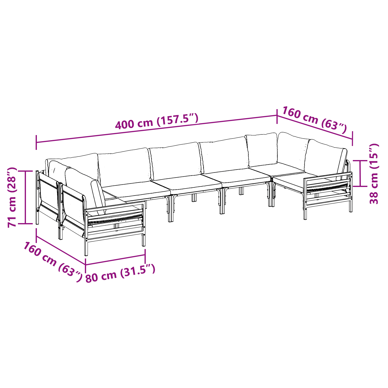 Tato moderní zahradní sedací souprava promění každý venkovní prostor díky svému elegantnímu designu a univerzálnímu uspořádání. Je navržená pro pohodlí a funkčnost, má čisté linie a jednoduchý, ale stylový vzhled, který zaručuje dlouhou životnost. S dostatkem místa k sezení je ideální pro rodinné setkání nebo klidné chvíle s knihou a přináší moderní atmosféru na zahradu nebo terasu.