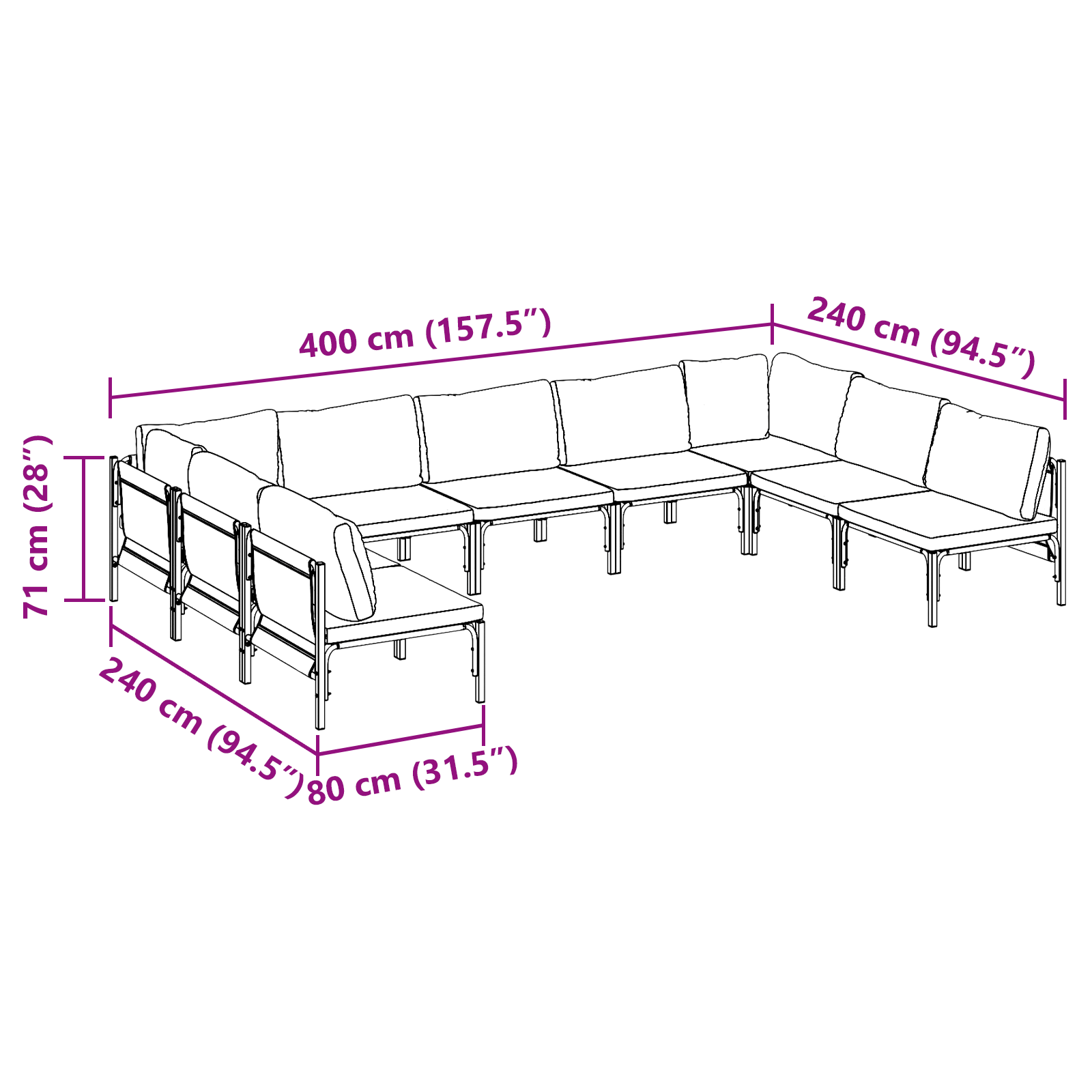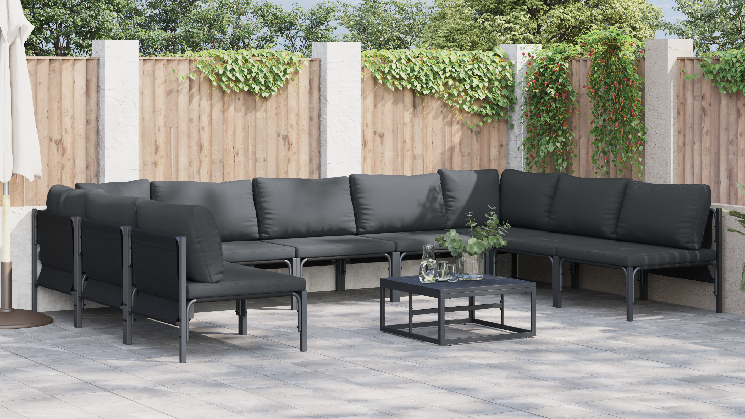 Tato moderní zahradní pohovka je dělaná na míru současným prostorům a okouzlí vaším venkovním prostorem elegantním designem s jednoduchými liniemi. Je určená na venkovní využití v zahradách a na terasách a dodá vašemu domovu špetku moderní elegance. Tento set s pevnou ocelovou konstrukcí a odolným polyesterovým potahem je perfektní na jarní a letní sezení, poskytuje pohodlí pro vaše odpočinkové chvíle nebo zábavu.