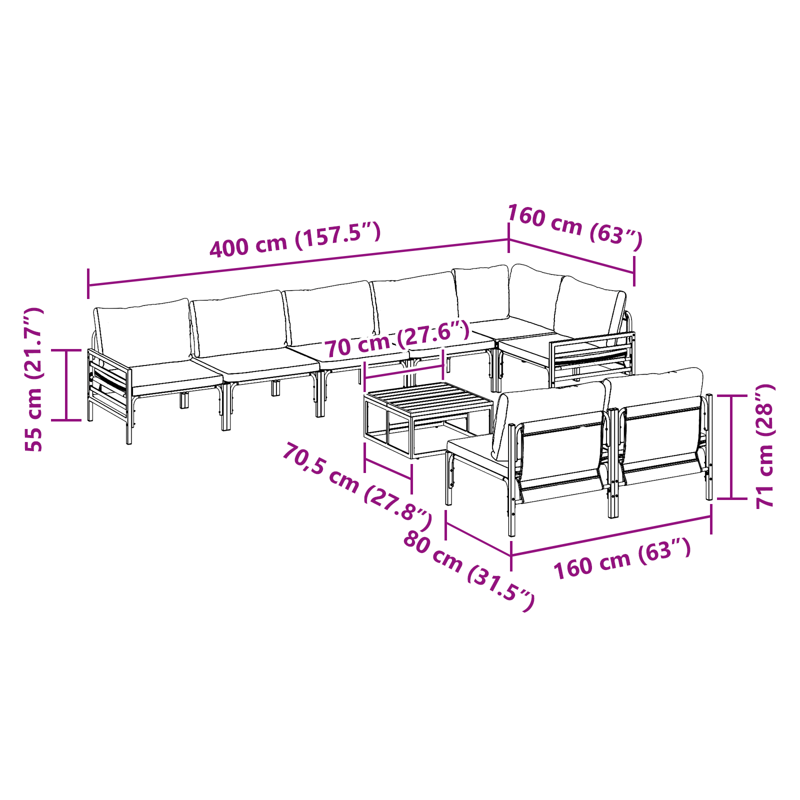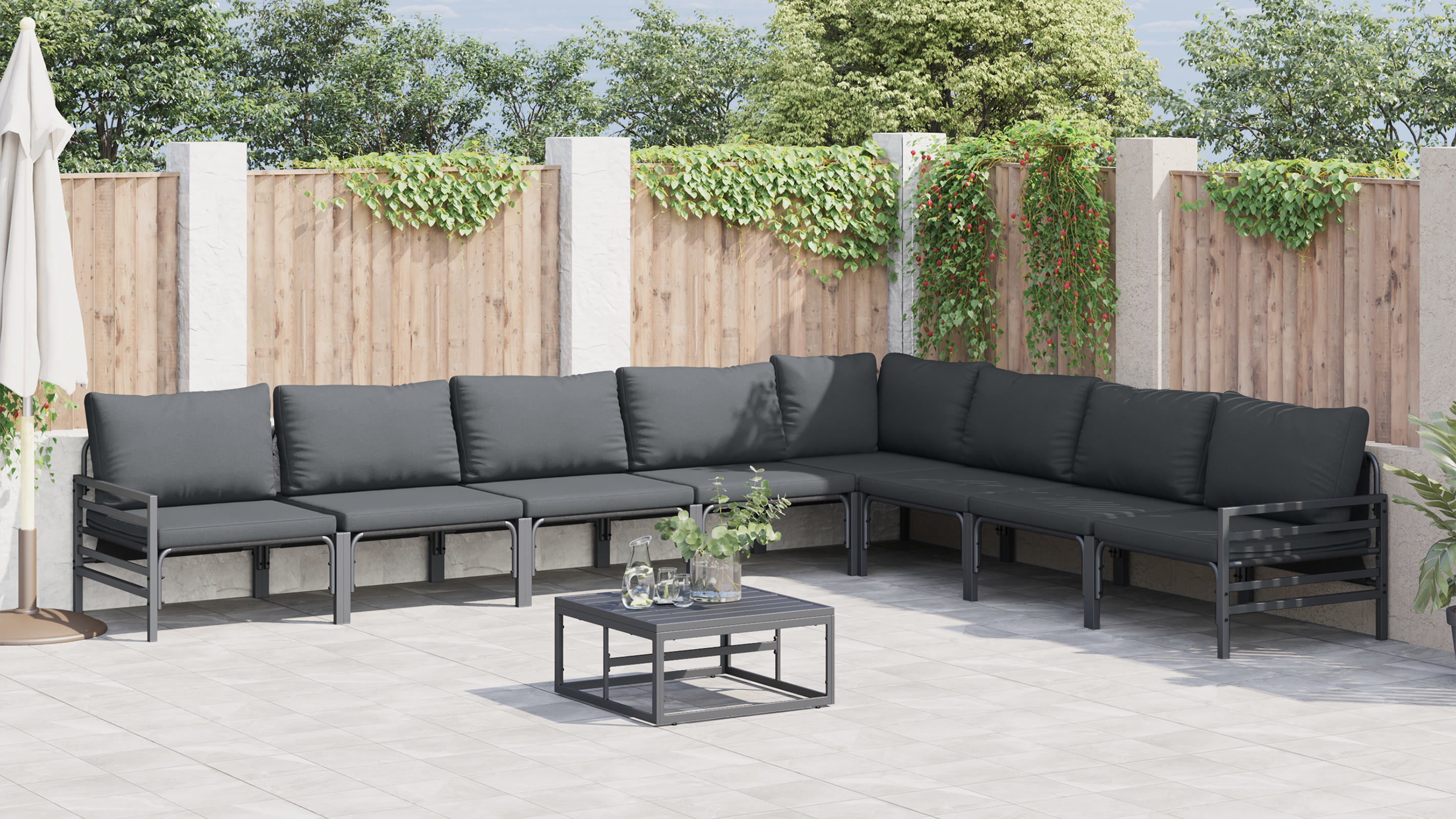 Tahle souprava zahradního nábytku má skvělý design, ideální pro venkovní odpočinek. Je moderní, má spoustu místa k sezení a dá se snadno sestavit, takže si užití venku užijete bez starostí. Vypadá skvěle a funguje ve všech typech venkovních prostor – od útulných setkání v zahradě až po lenošení u bazénu. Tahle souprava se hodí na všechny možné akce a lidi, přidává dotek elegance a pohodlí k jakékoli terase, takže je ideální pro socializaci, čtení nebo prostě lenošení na sluníčku. Ať už pořádáte zahradní párty nebo si jen vychutnáváte klidnou kávičku, tahle souprava promění váš venkovní prostor na relaxační oázu.
