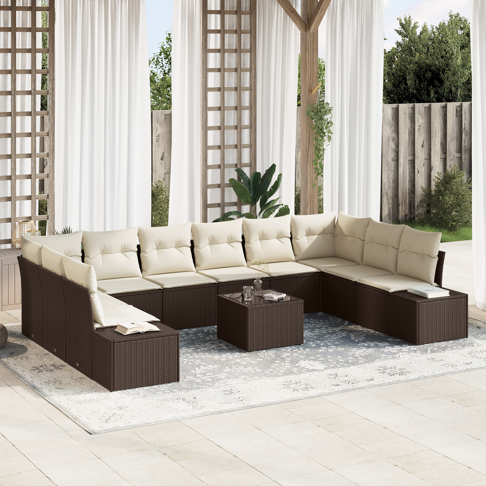 Tento zahradní pohovkový set s polštáři spojuje moderní pohodlí a funkčnost. Perfektní pro terasy a zahrady, vyzývá vás k relaxaci, ať už se jedná o slunečné odpoledne nebo hvězdné noci s rodinou a kamarády. Design bezproblémově zapadá do prostředí a nabízí pohodlné a měkké sezení, které osloví všechny.
