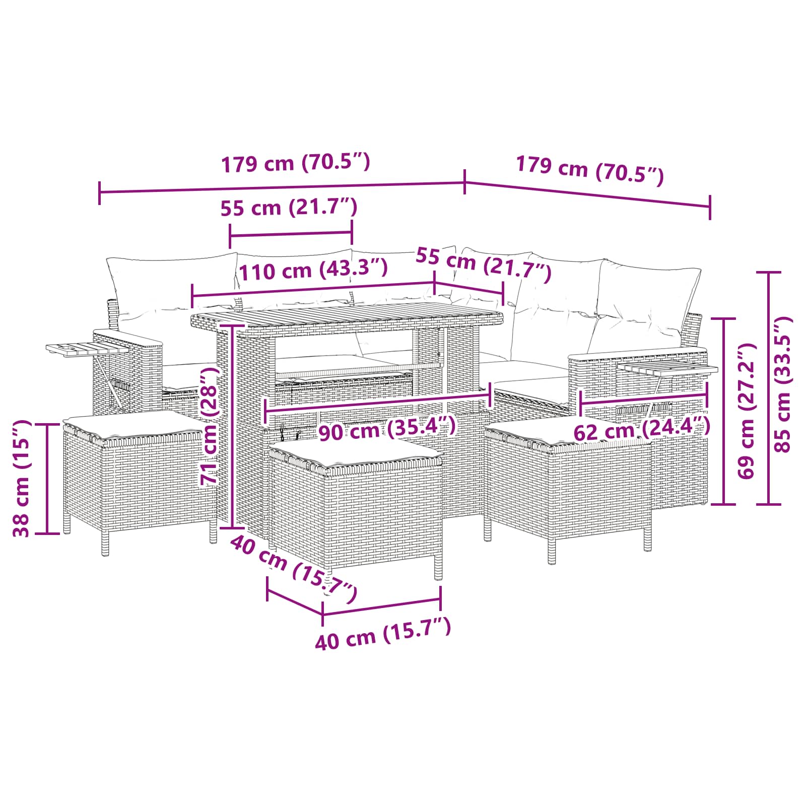 Tahle zahradní sofa sada, určená na terasy a do zahrad, přináší moderní eleganci s minimalistickým designem a čistýma liniema. Skvělá na povalování nebo organizování večírků, kombinuje pěkný poly ratan s odolným rámem z práškově lakované oceli. Tkaný povrch dodává zajímavý rozměr, zatímco kombinace počasí odolných materiálů zajišťuje, že si bude držet kvalitu napříč ročními obdobími. Sada je obohacena o pohodlné polštáře, které se dají kdykoliv vyjmout a vyměnit, takže se skvěle hodí pro různé styly a prostředí. To vše zajišťuje, že si užijete nejen společenské události, ale i klidné chvilky při relaxaci.
