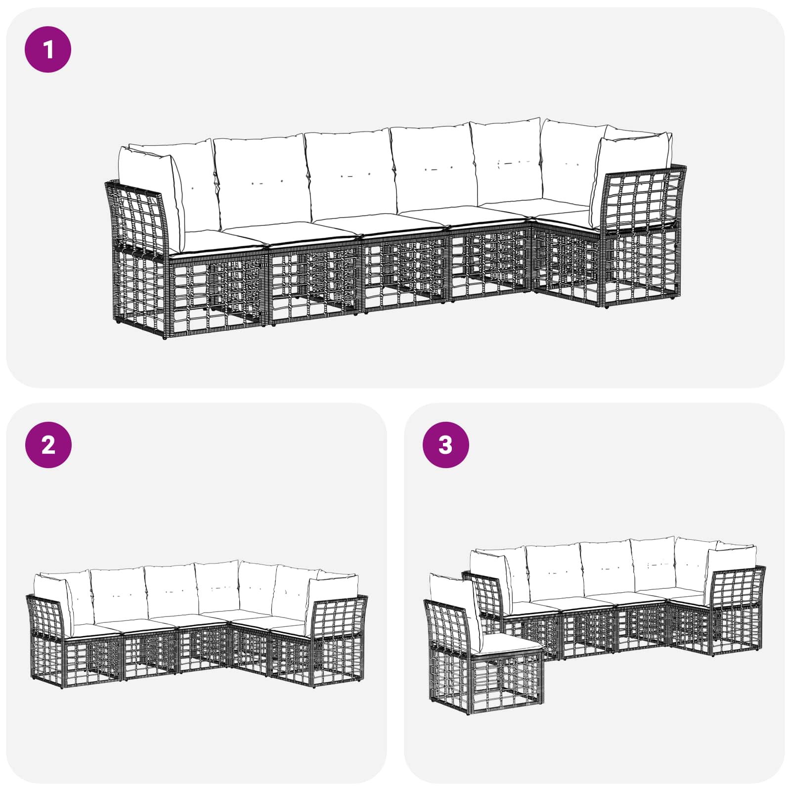 Tato zahradní pohovka je navržená, aby vám poskytla pohodlné sezení venku, ať už na terase, zahradě nebo balkóně. Kombinace poly ratanového tkaní a práškově lakovaného ocelového rámu vytváří vyvážený vzhled, co se hodí do různých venkovních prostorů. Díky modulární struktuře si můžete uspořádat sedací části podle potřeby a aktivity. Ať už pro neformální setkání nebo klidný odpočinek venku, tato souprava vám zajistí pohodlné sezení z materiálů vhodných pro venkovní použití.