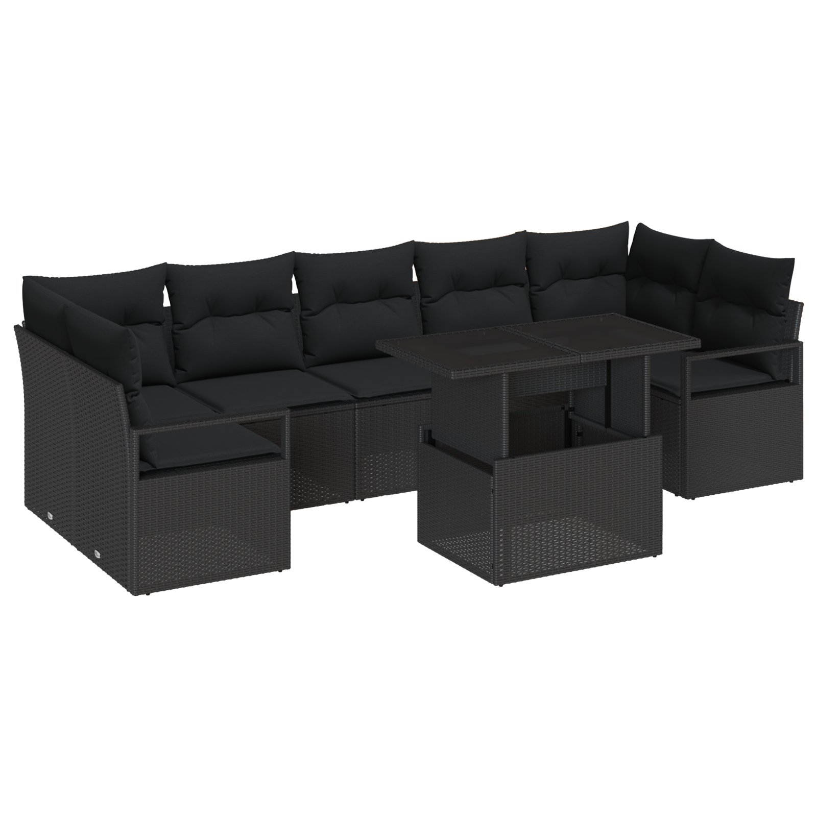 Sada zahradních pohovek s polštářem 8 pcs Černá polyratan