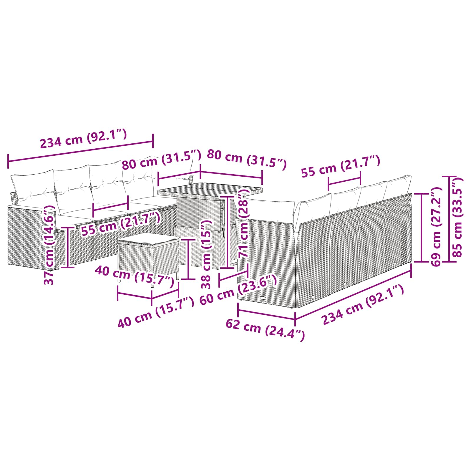 Poly ratanová konstrukce Sada je vyrobená z poly ratanu, což zaručuje dlouhou životnost a odolnost vůči počasí. Elegantní textura dodává zahradě styl, aniž by se obětovala odolnost.