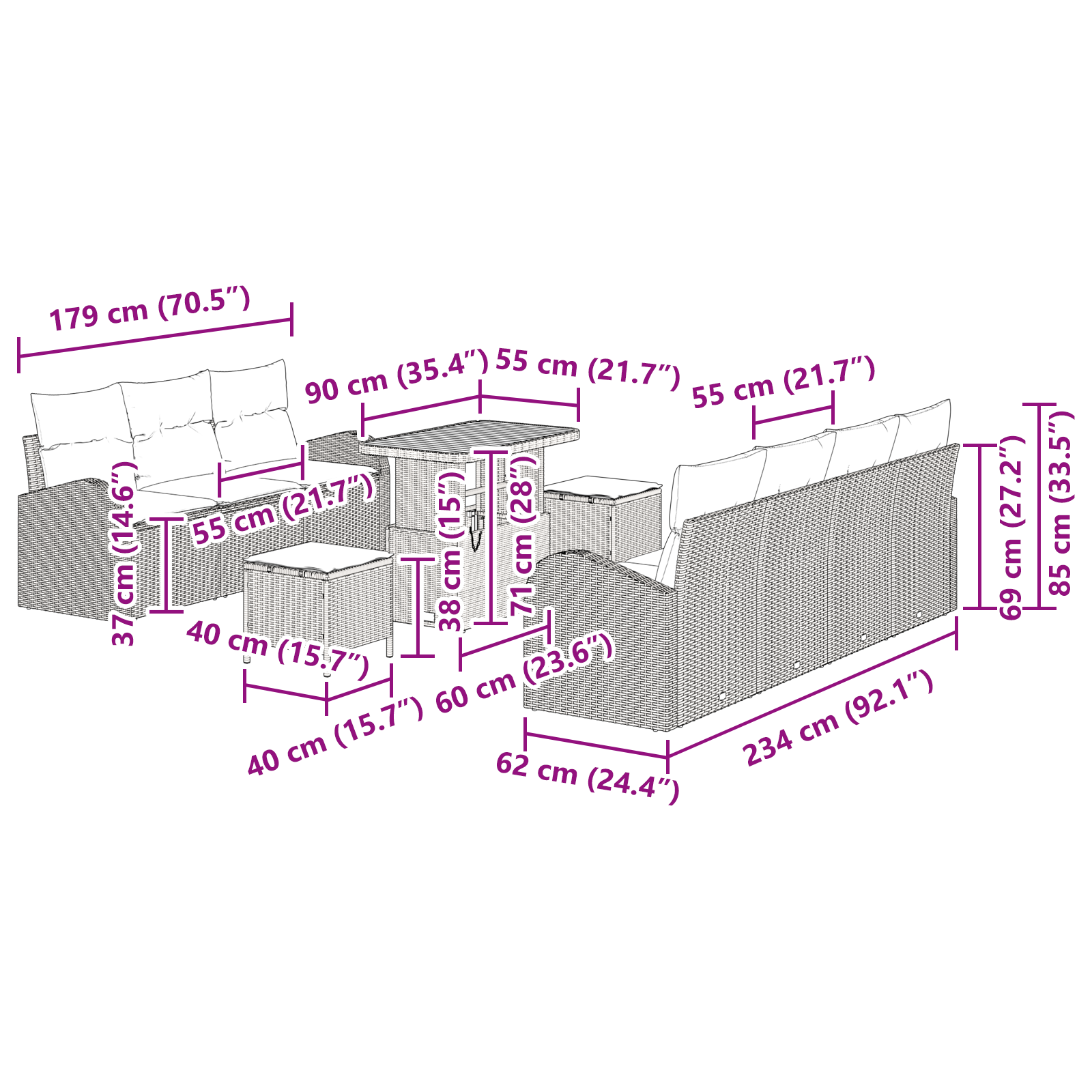 Sada zahradních pohovek s polštářem 10 pcs Černá polyratan