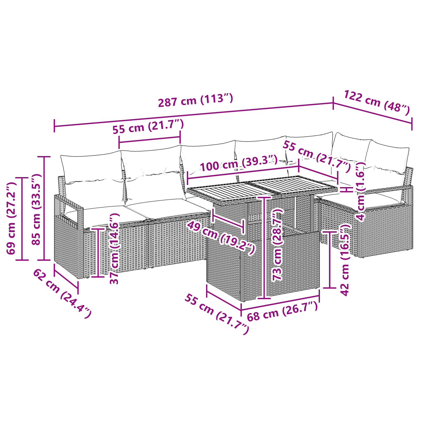 Tato elegantní zahradní jídelní sada z poly ratanu nabízí stylovou, moderní možnost pro venkovní lenošení a stolování. Její hladký, minimalistický design s geometrickými liniemi dodává nádech elegance, což ji činí ideální pro zahradní a terasová prostředí. Dokonalá pro jaro a léto, vyhovuje různým prostředím, kde se požaduje kombinace funkčnosti a estetiky.