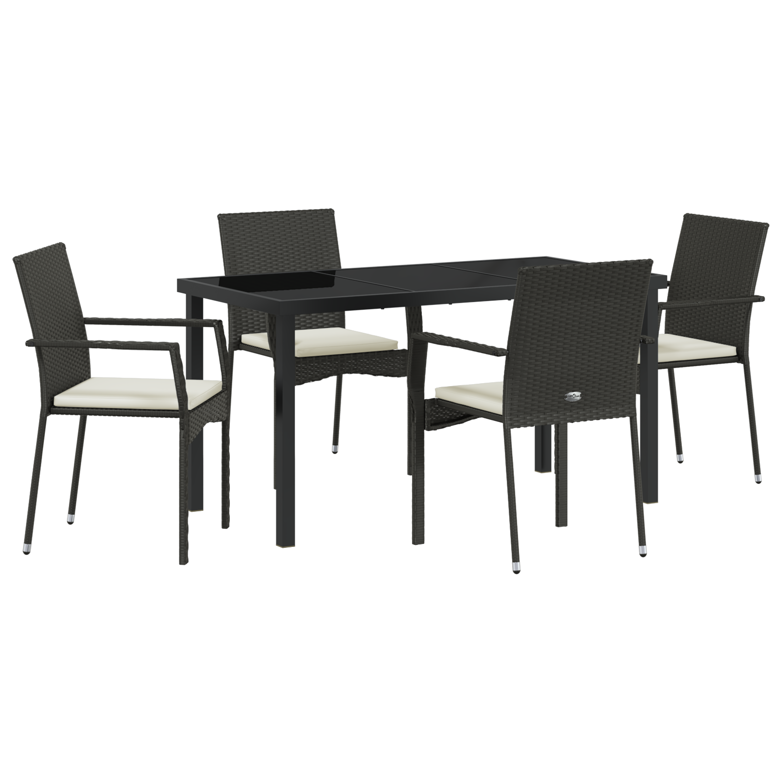 Zahradní jídelní souprava s polštářem 5 pcs Černá polyratan