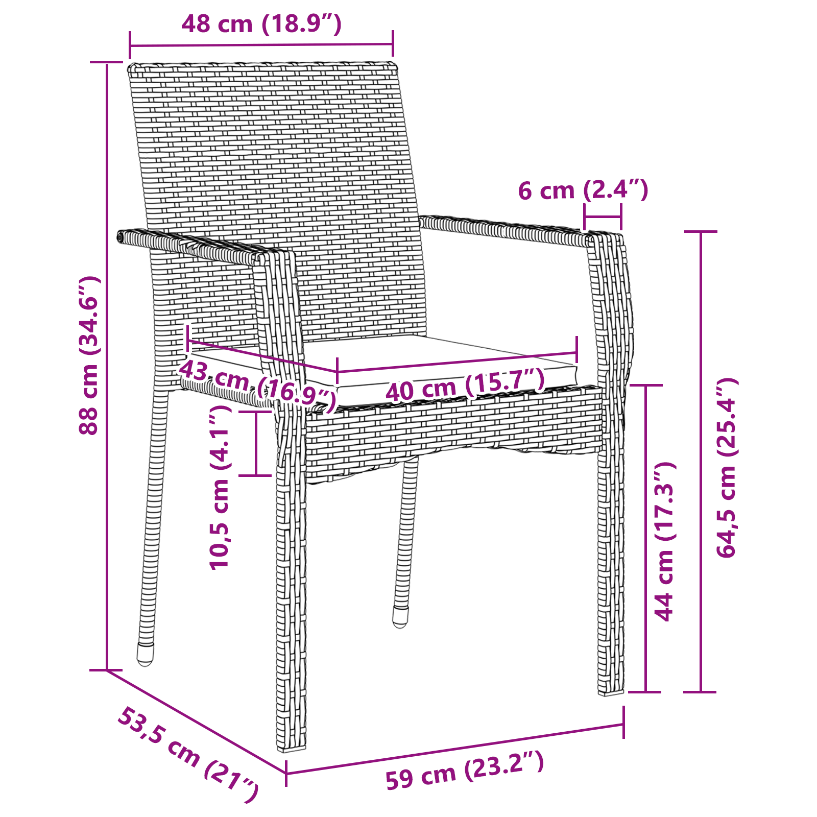 • Odolné materiály: Vyrobeno z odolného polyratanu a práškově lakované oceli. Tvrzené sklo dává stolu stylový vzhled a je připraveno na každodenní používání. Polyratanové křesla jsou pohodlná a nohy zajišťují stabilitu.