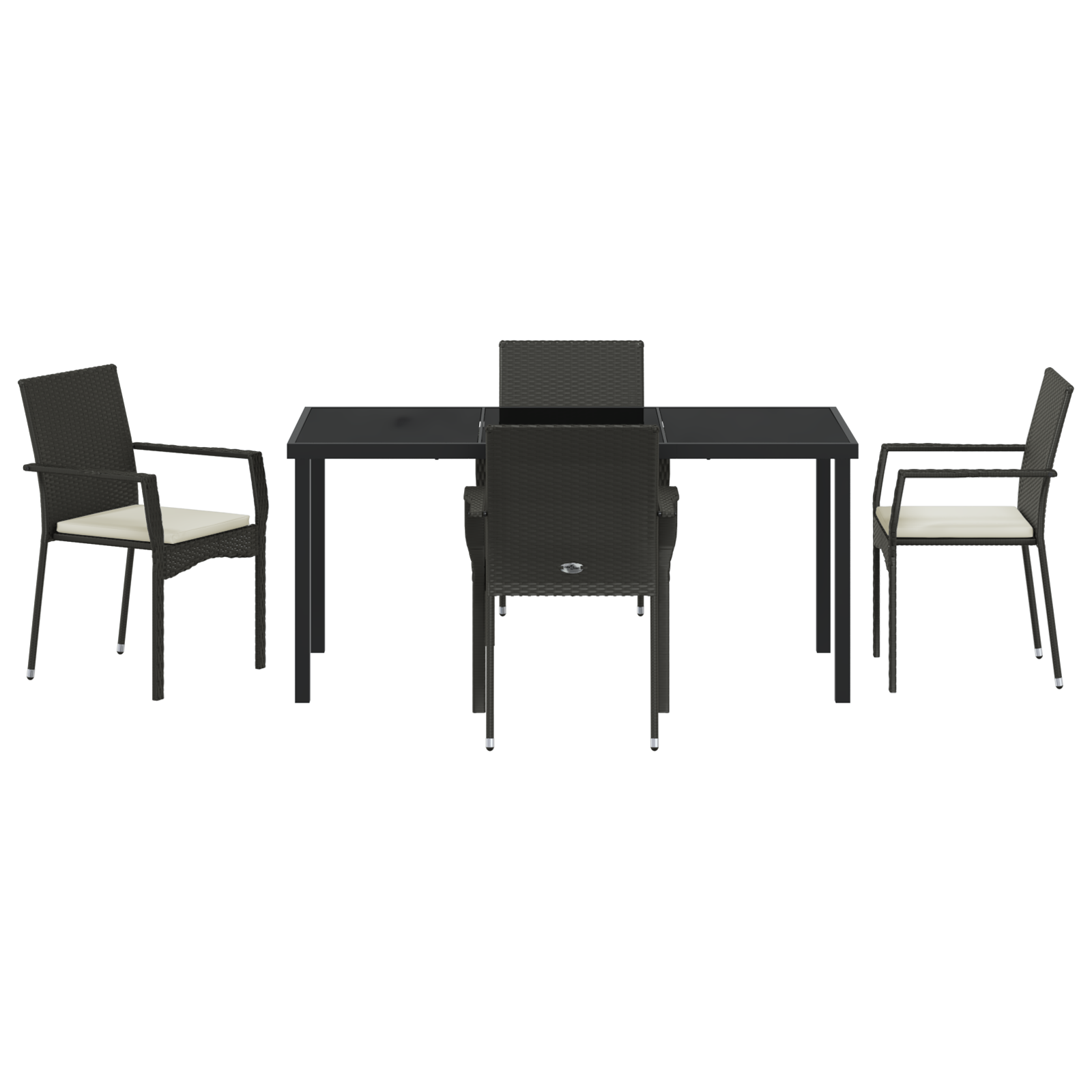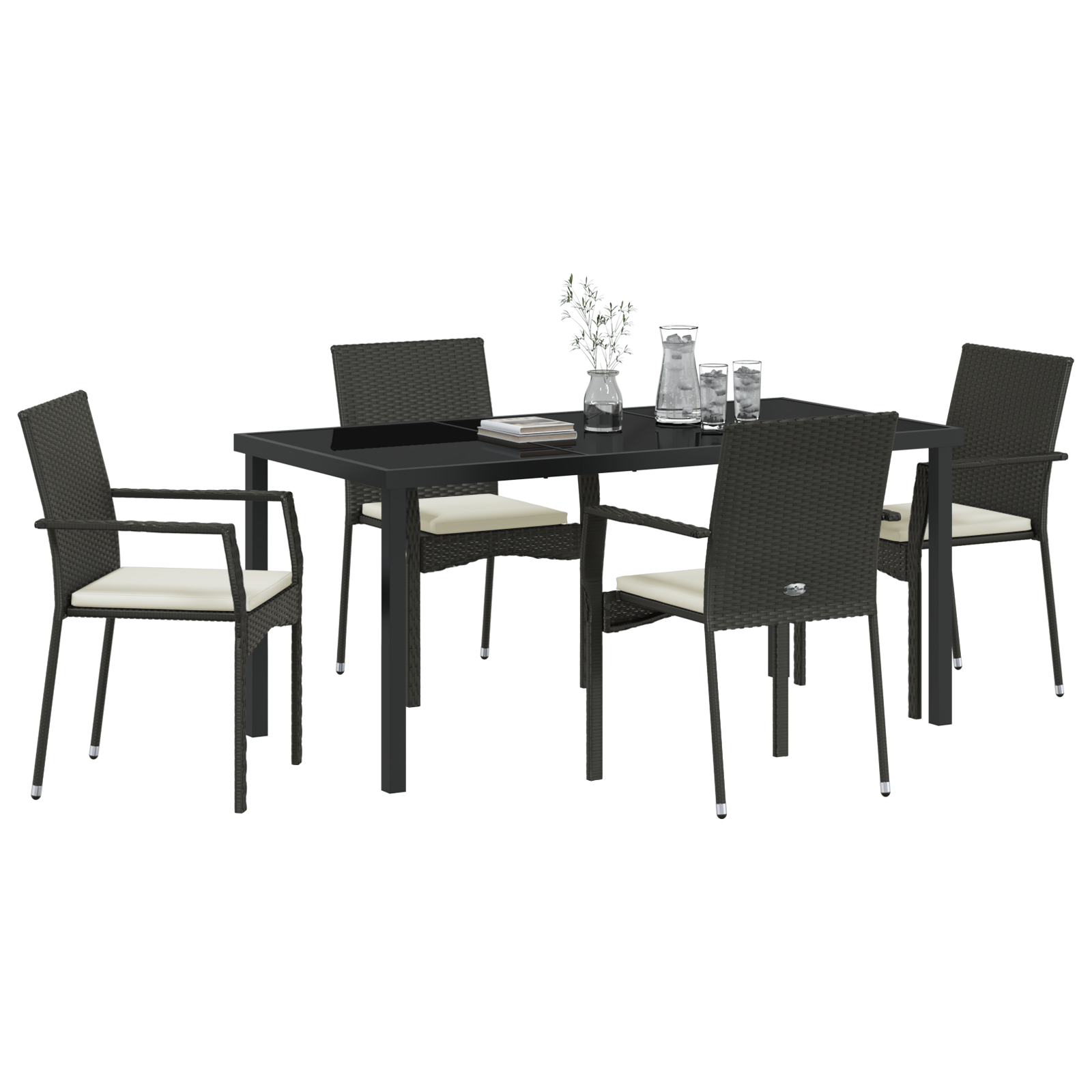 Zahradní jídelní souprava s polštářem 5 pcs Černá polyratan