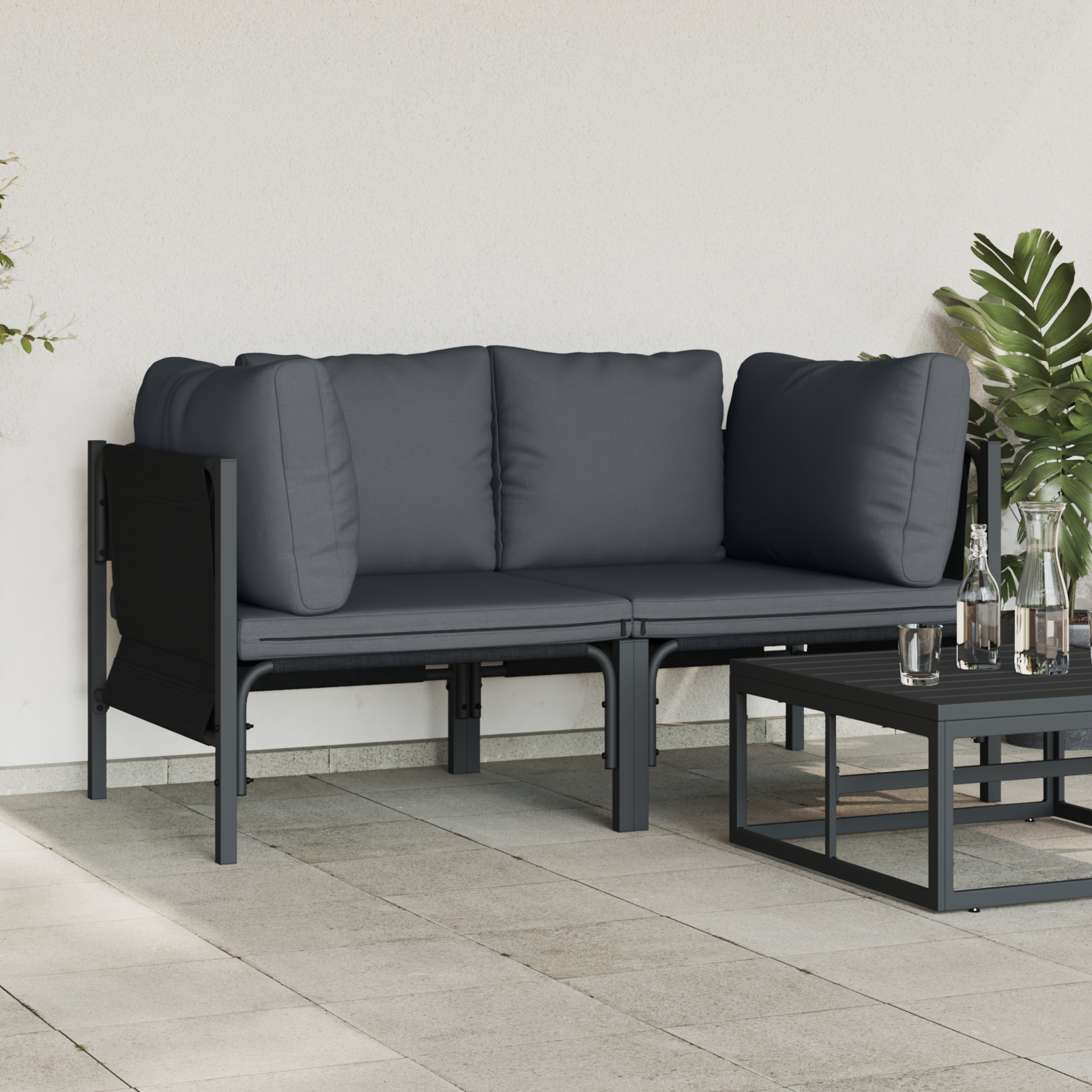 Tato outdoorová sekční sedačka je super volba pro ty, co chtějí zkrášlit svou zahradu nebo terasu. Antracitové barvy dodávají elegance a slibují pohodové chvíle. S jednoduchým designem a elegantními liniemi je ideální na večerní posezení, společenské akce nebo klidné ráno v přírodě. Její kovová konstrukce je pevná a vypadá stylově, takže se hodí do různých prostorů. Promyšlený design přináší skvělou všestrannost pro jakýkoliv venkovní prostor.