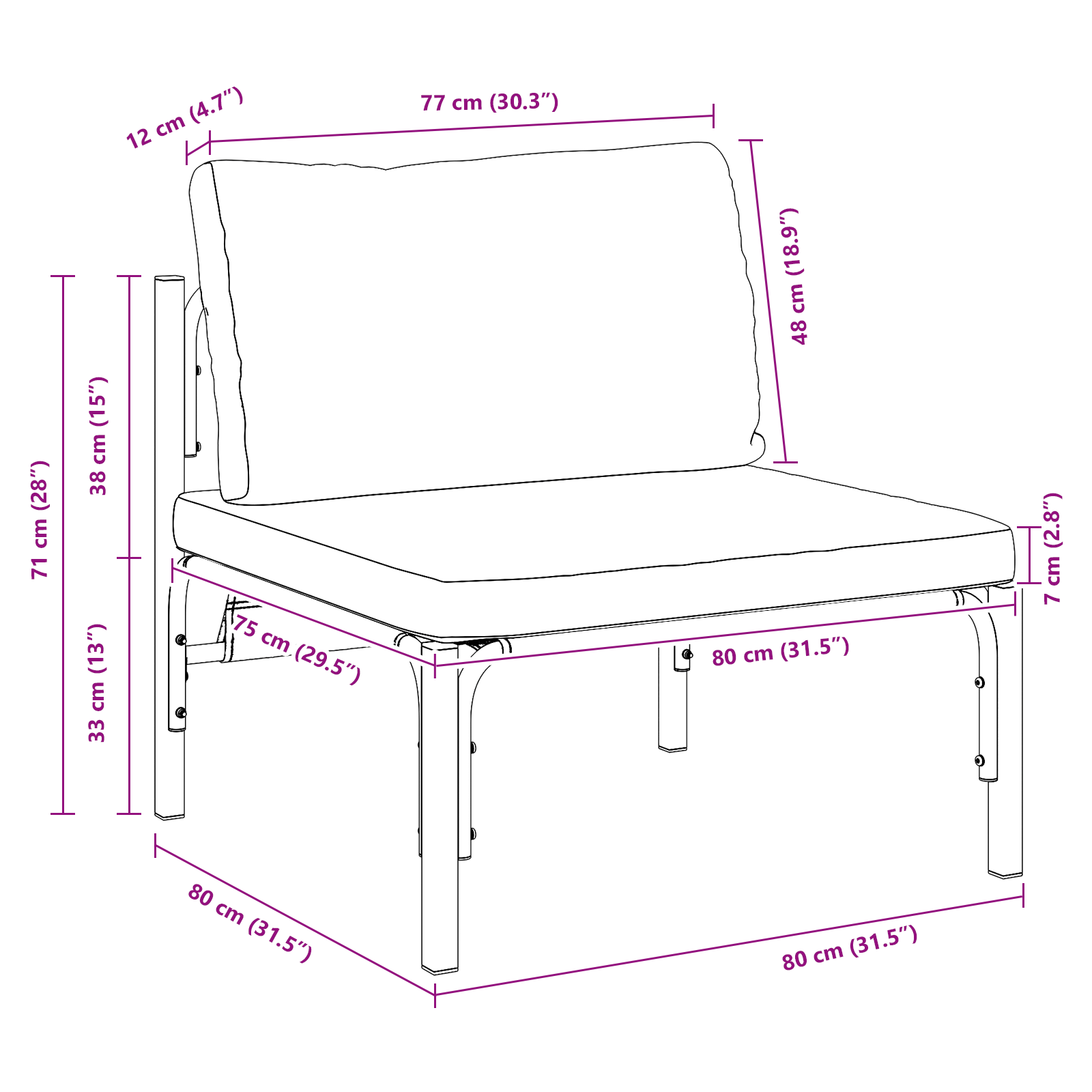 • Celkové rozměry: 80 x 80 x 71 cm (D x Š x V)