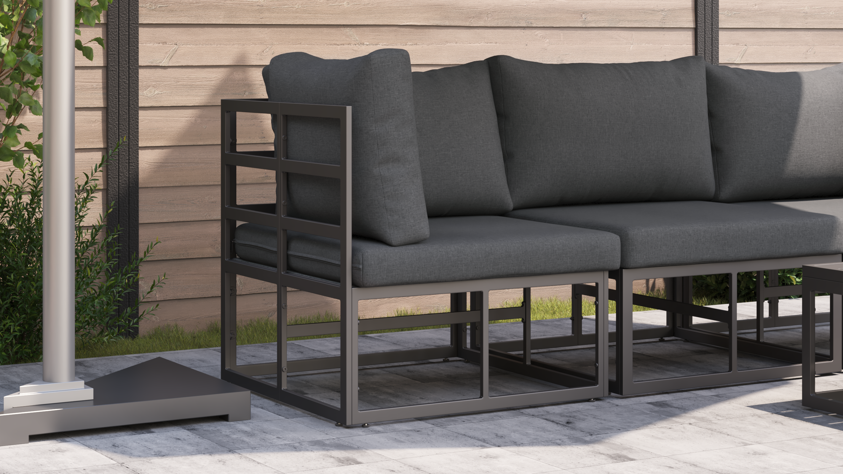 • Součásti: Tato moderní souprava má kovové rámy s práškovým povrchem, který chrání proti povětrnostním vlivům a vypadá elegantně. Kovové nohy zajišťují stabilitu, byly navrženy, aby vyvážily váhu na různých površích. Je ztělesněním moderního venkovního nábytku a vyzařuje styl.