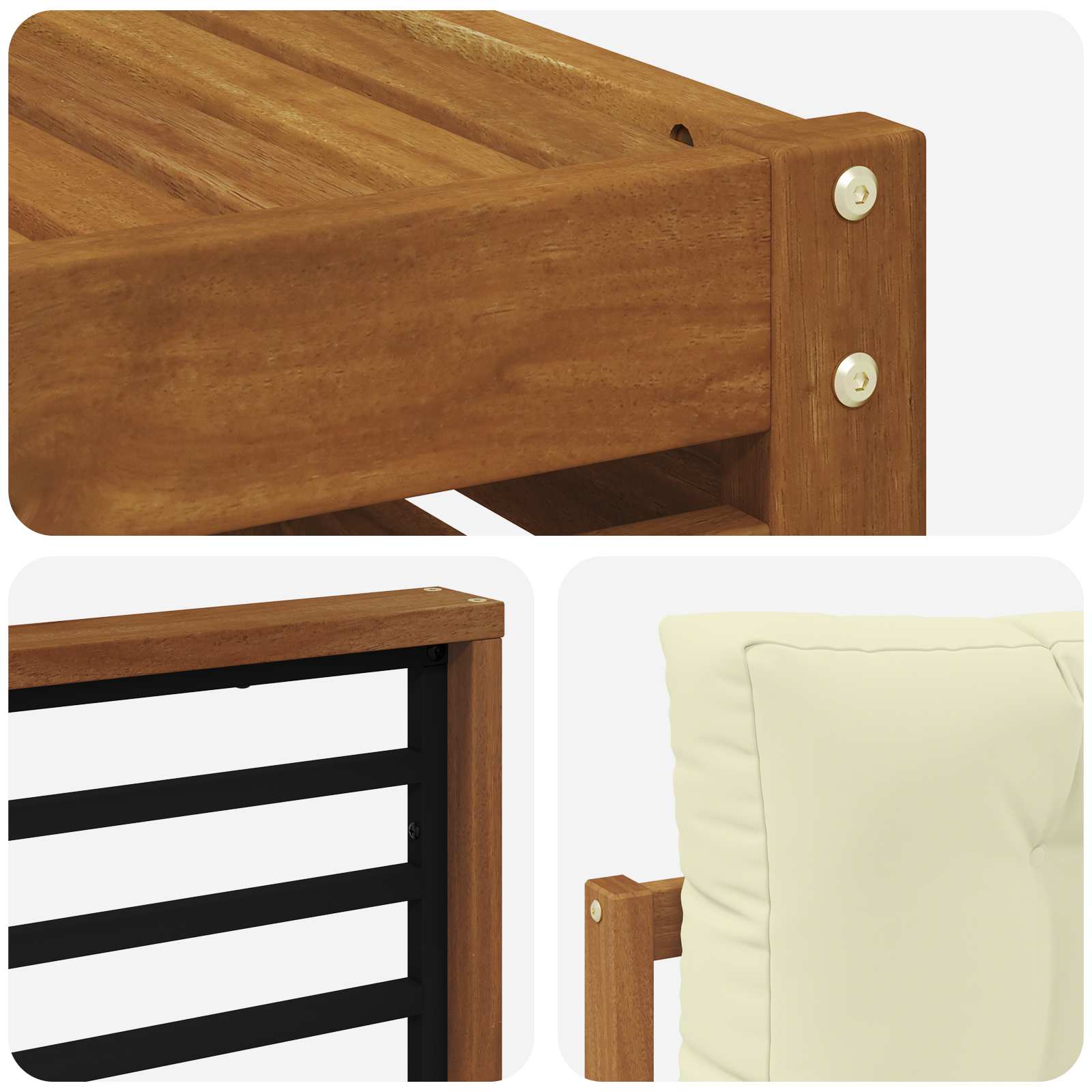• Odolné masivní akáciové dřevo: V těhlech venkovních sedačkách je použitý masivní akáciový materiál, který je super pevný a snáší venkovní podmínky. Stabilní konstrukce poskytuje spolehlivou oporu a teplé přírodní tóny dodávají styl každé zahradě nebo terase.