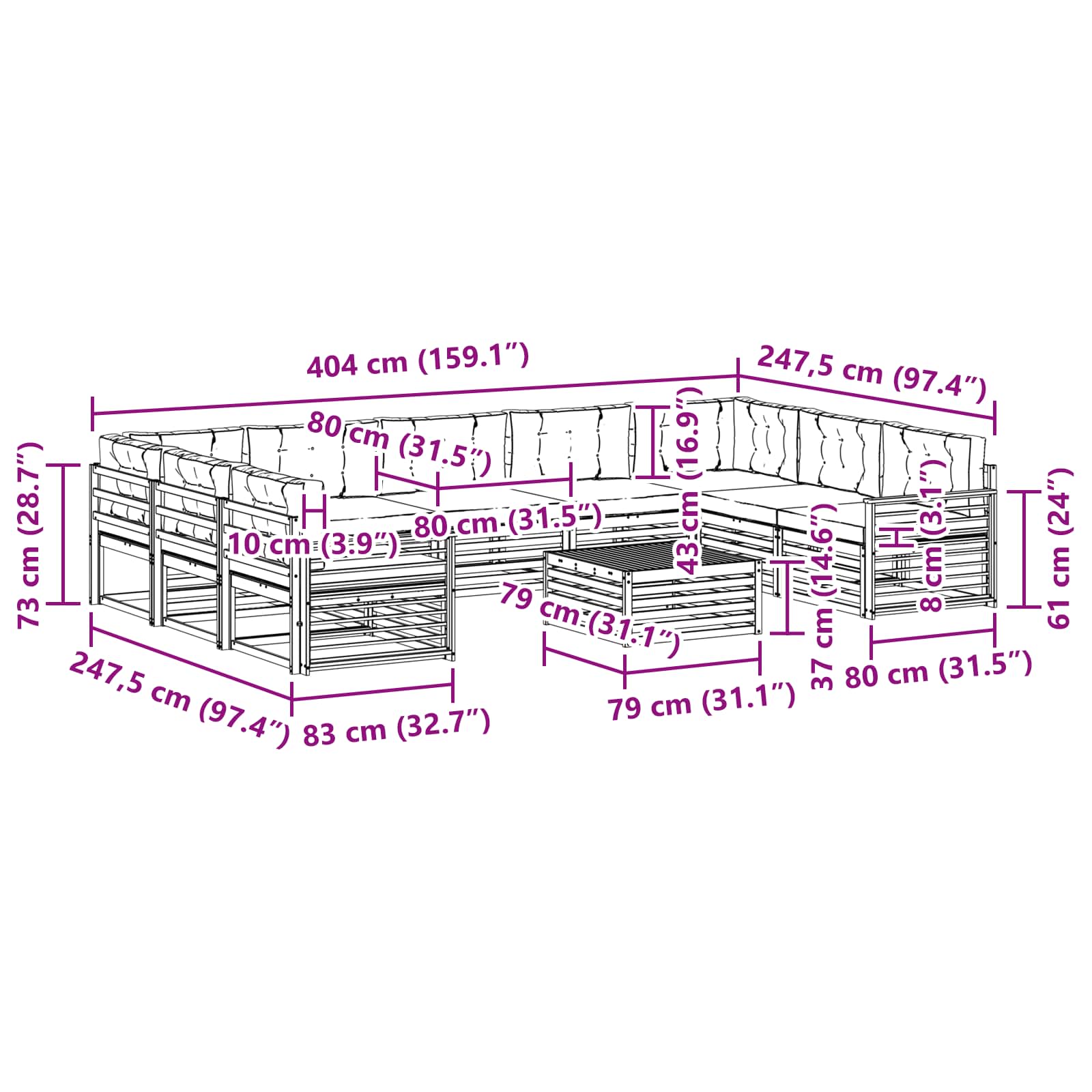 • 11 x Zádový polštář: 80 x 43 x 10 cm (D x Š x V)