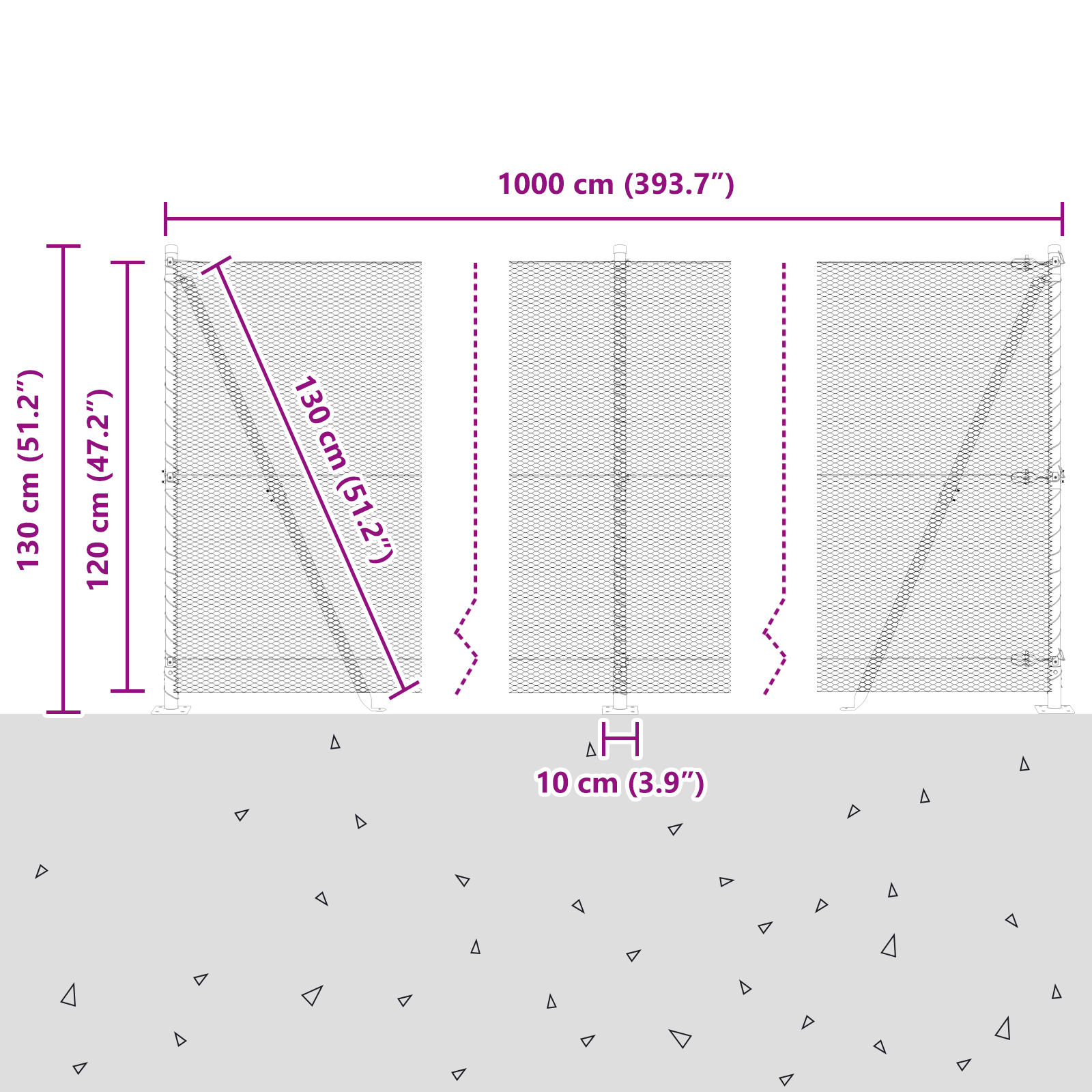 Plotový sloupek. Šedá 10 x 1,2 m (13 mm síť) Ocel a PVC