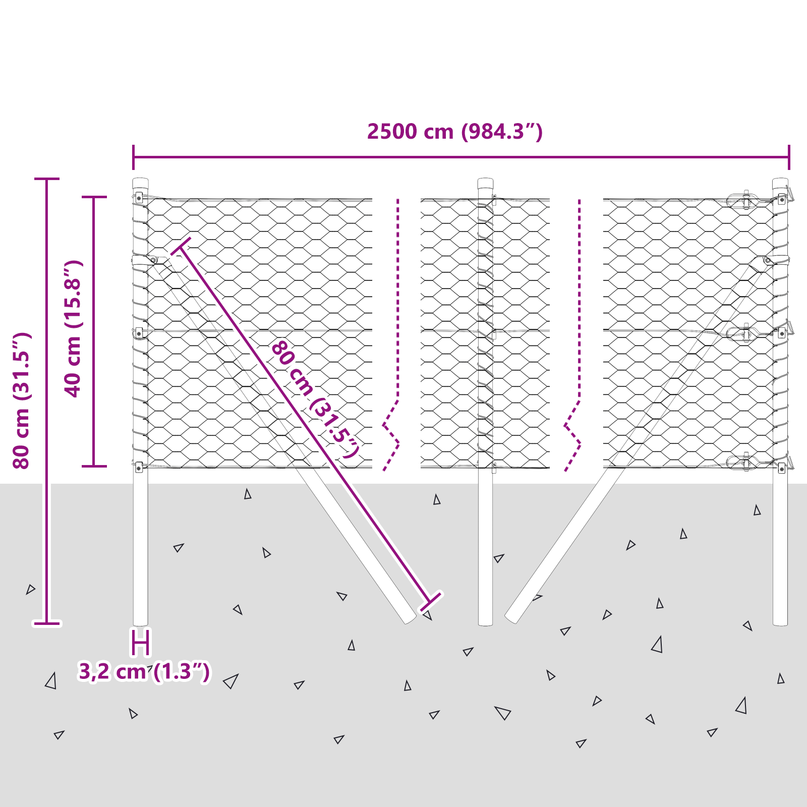 Plotový sloupek. Šedá 25 x 0,4 m (36 mm síť) Ocel a PVC