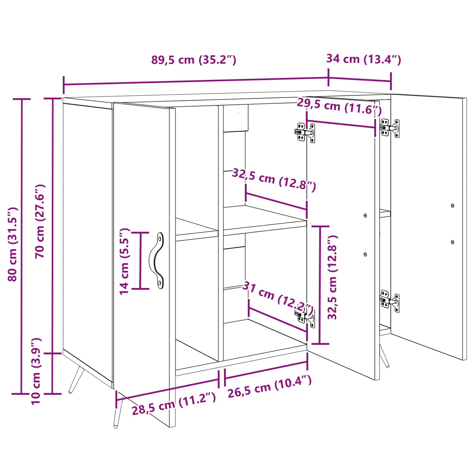 • Celkové rozměry: 89,5 x 34 x 80 cm (D x Š x V)