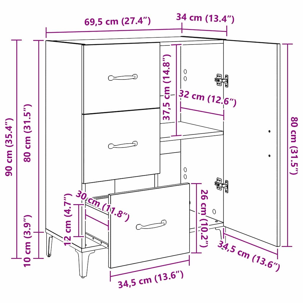 Servírovací skříň Černý dub 69,5 x 34 x 90 cm kompozitní dřevo