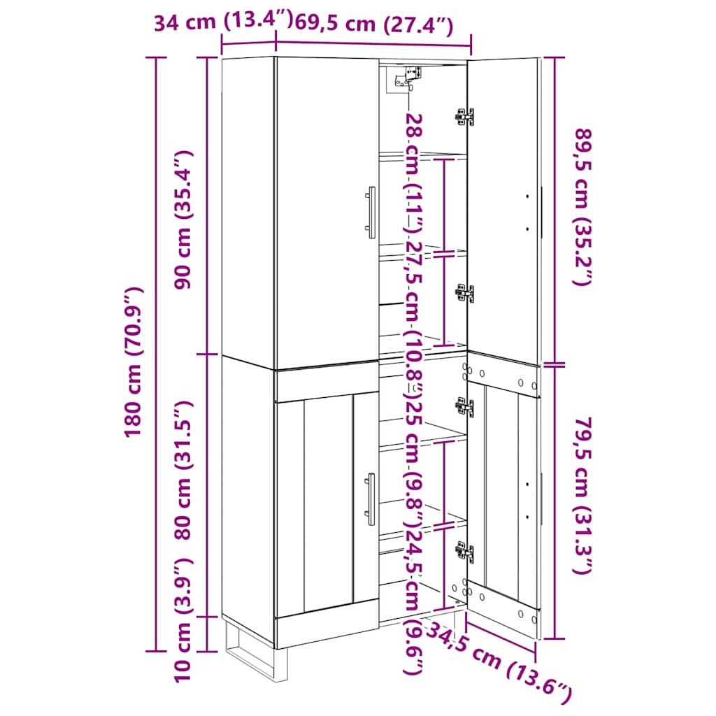 • 1 x Vrchní deska pro vysokou skříň: 69,5 x 34 x 90 cm(DxŠxV)