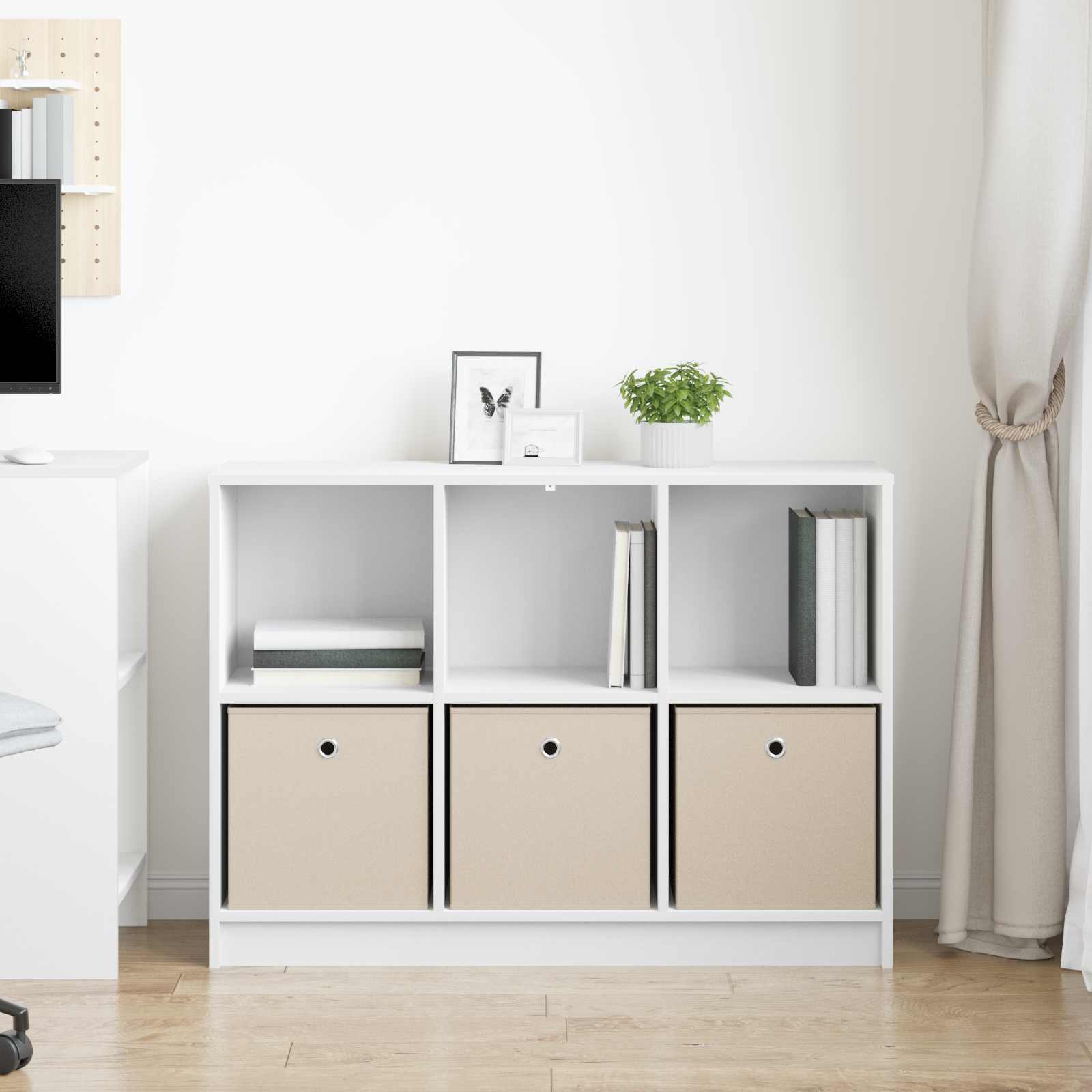 Tento moderní servírovací stolek je stylové úložné řešení do různých prostor. Jeho minimalistický design se skvěle hodí do současných interiérů. Samostatná konstrukce nabízí dostatečný úložný prostor pro knihy, dekorace a další nezbytnosti. S čistými liniemi a zapuštěnými úchytkami přináší do vašeho domova moderní šmrnc.
