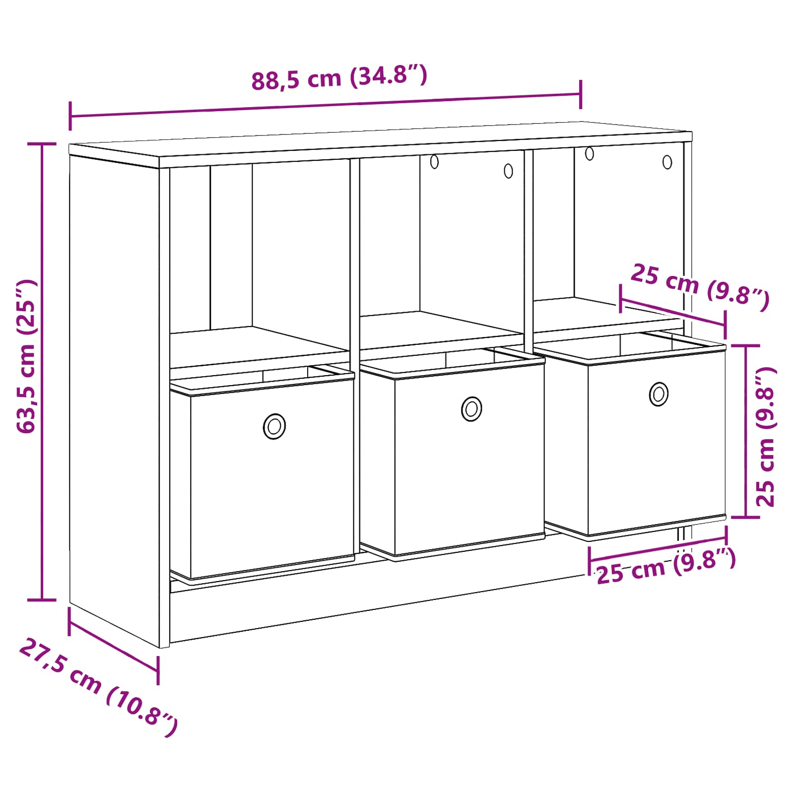 • Celkové rozměry: 88,5 x 27,5 x 63,5 cm (Š x H x V)