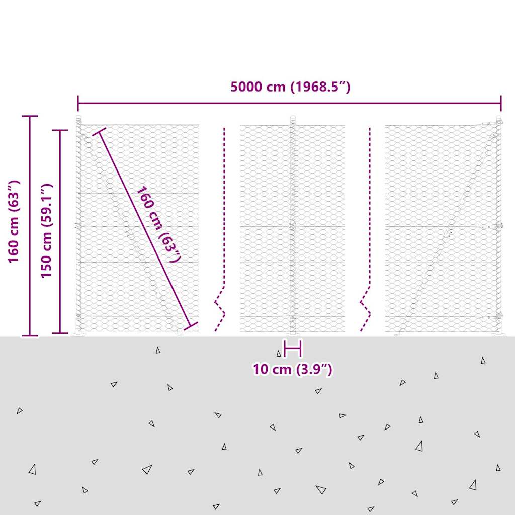 Plotový sloupek. Šedá 50 x 1,5 m (36 mm síť) Ocel a PVC