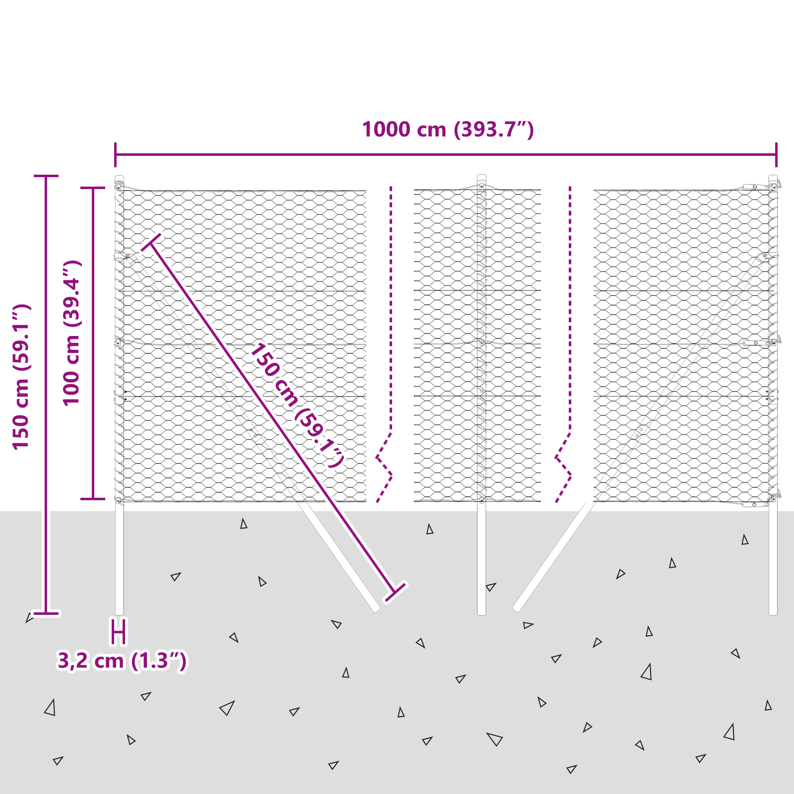 Plotový sloupek. Šedá 10 x 1 m (36 mm síť) Ocel a PVC