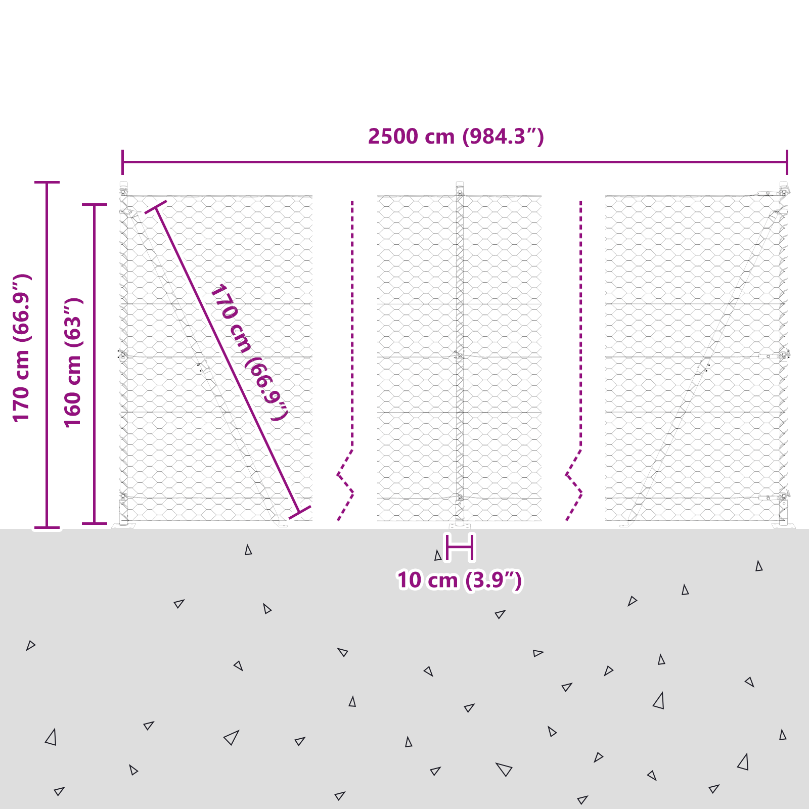 • Celkové rozměry: 2500 x 3,2 x 160 cm (D x Š x V)