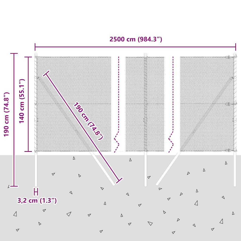 Plotový sloupek. Šedá 25 x 1,4 m (13 mm pletivo) Ocel a PVC