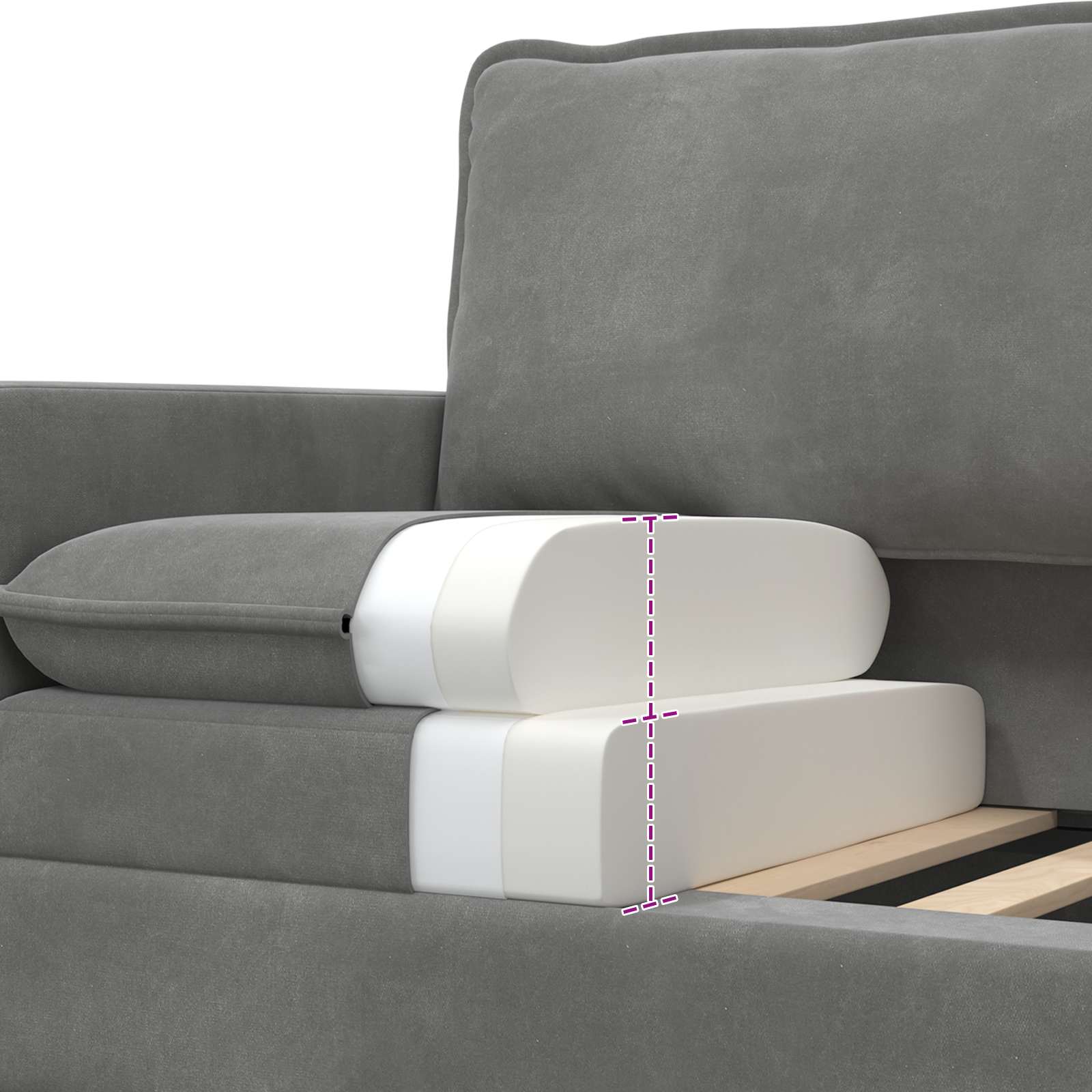 Tahle moderní pohovková souprava spojuje úžasný vzhled s pohodlím na každodenní používání. Její sametové potahy dodávají na stylu, zatímco minimalistický design pomáhá udržet pokoj pěkně uspořádaný. Dvouvrstvé polštáře jsou skvělé k sezení během příjemných konverzací nebo při čtení oblíbené knihy. Hlavně její proporce jsou ideální na akční v bytech i větších obytných prostorách.