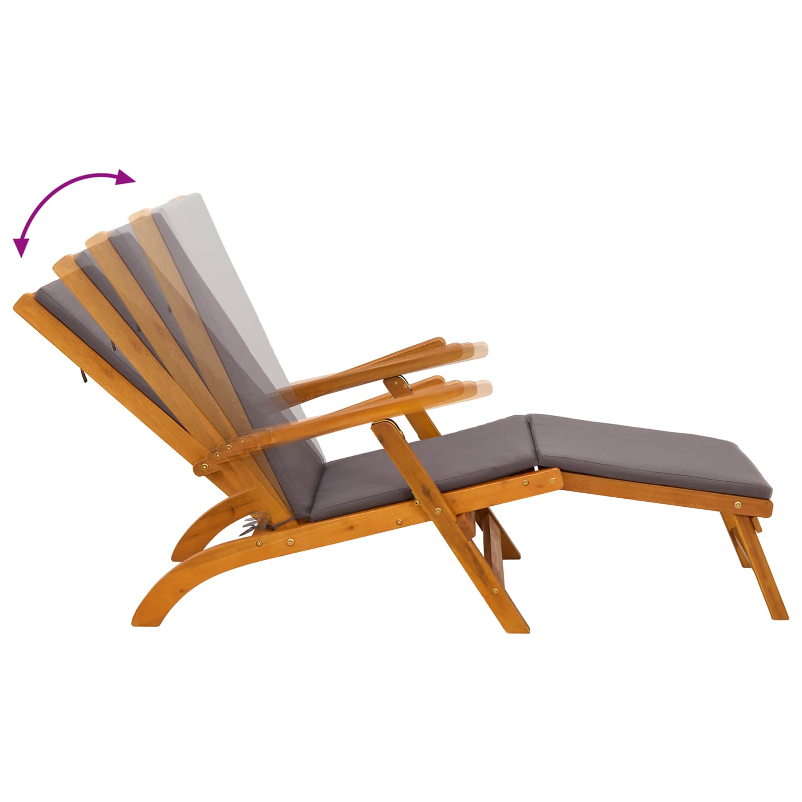 • Flexibilní polohovací systém: Opěradlo má pět různých úhlů, které si můžete nastavit podle potřeby. To vám umožní najít si ideální polohu pro čtení, opalování nebo si prostě odpočinout.
