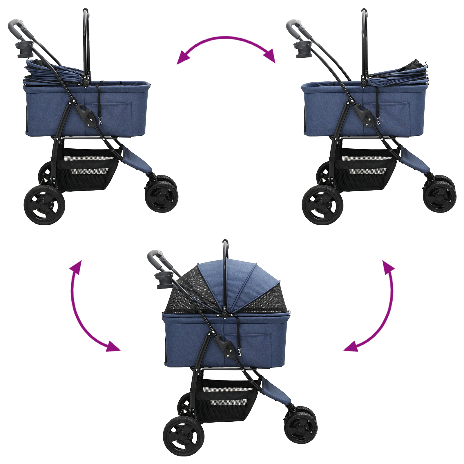 • Chytré Funkce: Kočárek má pohodlná kolečka navržená na hladké jízdy a méně otřesů. Tato kolečka usnadňují procházky po různých typech povrchů, a tví mazlíčci zůstávají klidní, když jedou. Navíc se celý snadno skládá, což dělá přepravu a ukládání hračkou.
