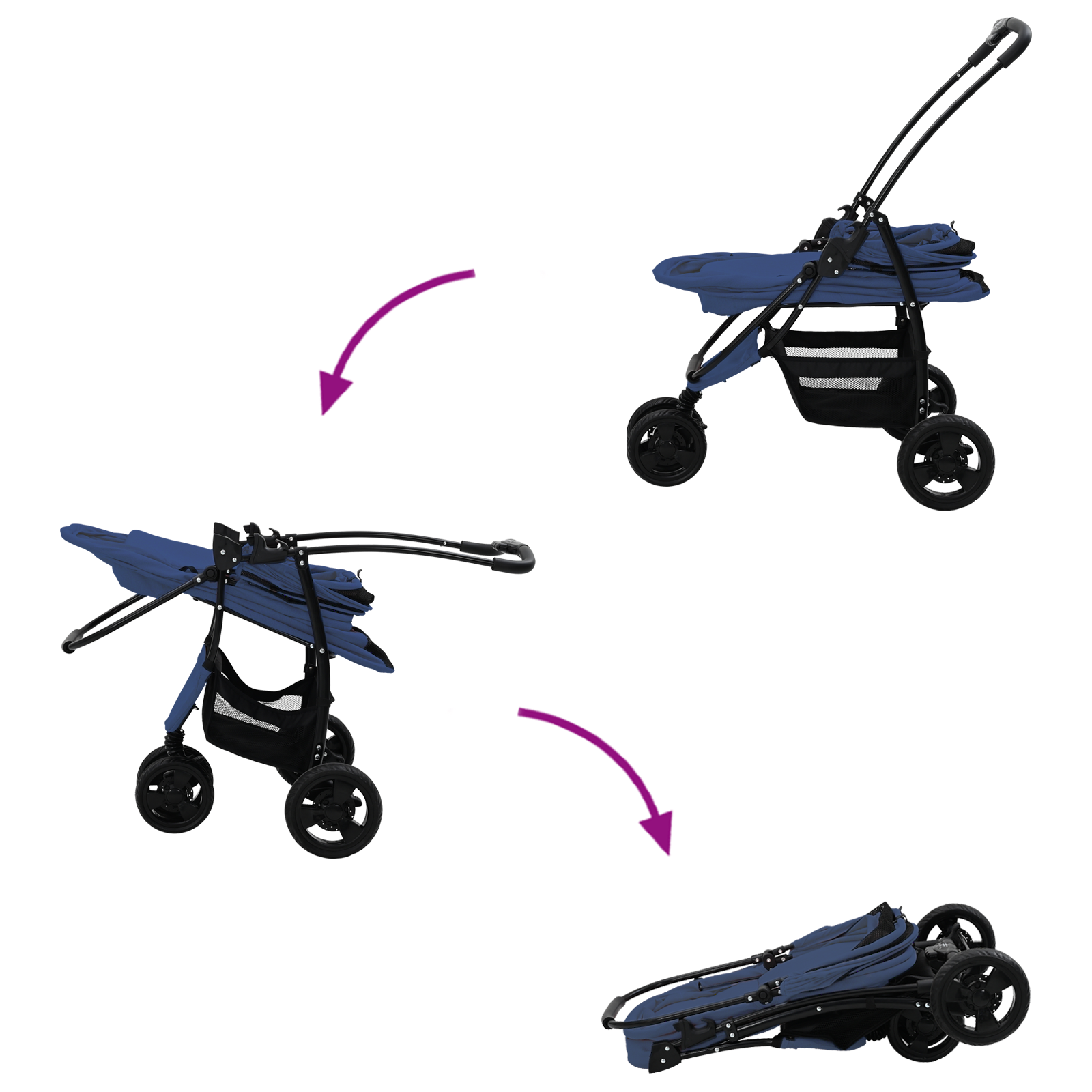 Skládací kočárek pro domácí mazlíčky Modrá 78 x 54 x 101 cm