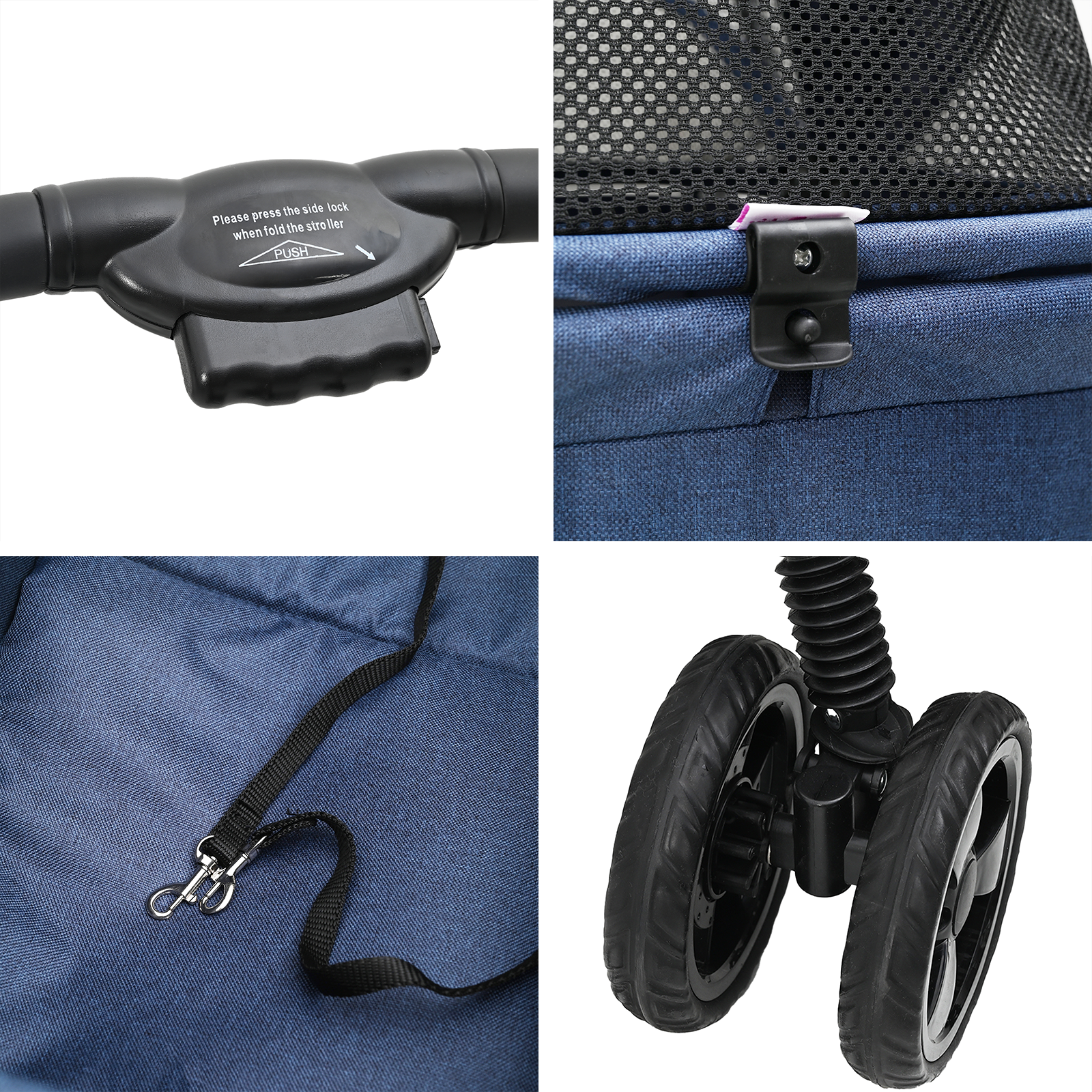 • Skvělé Materiály: Kočárek je vyrobený z kvalitní 600D Oxford tkaniny, která je odolná a dobře vypadá. Voděodolný polyester chrání před drobným deštěm a skvrnami, takže zůstává v top stavu. Ocelový rám poskytuje stabilní oporu, čímž vytváří bezpečné místo pro tvé zvířata i na nerovných cestách.