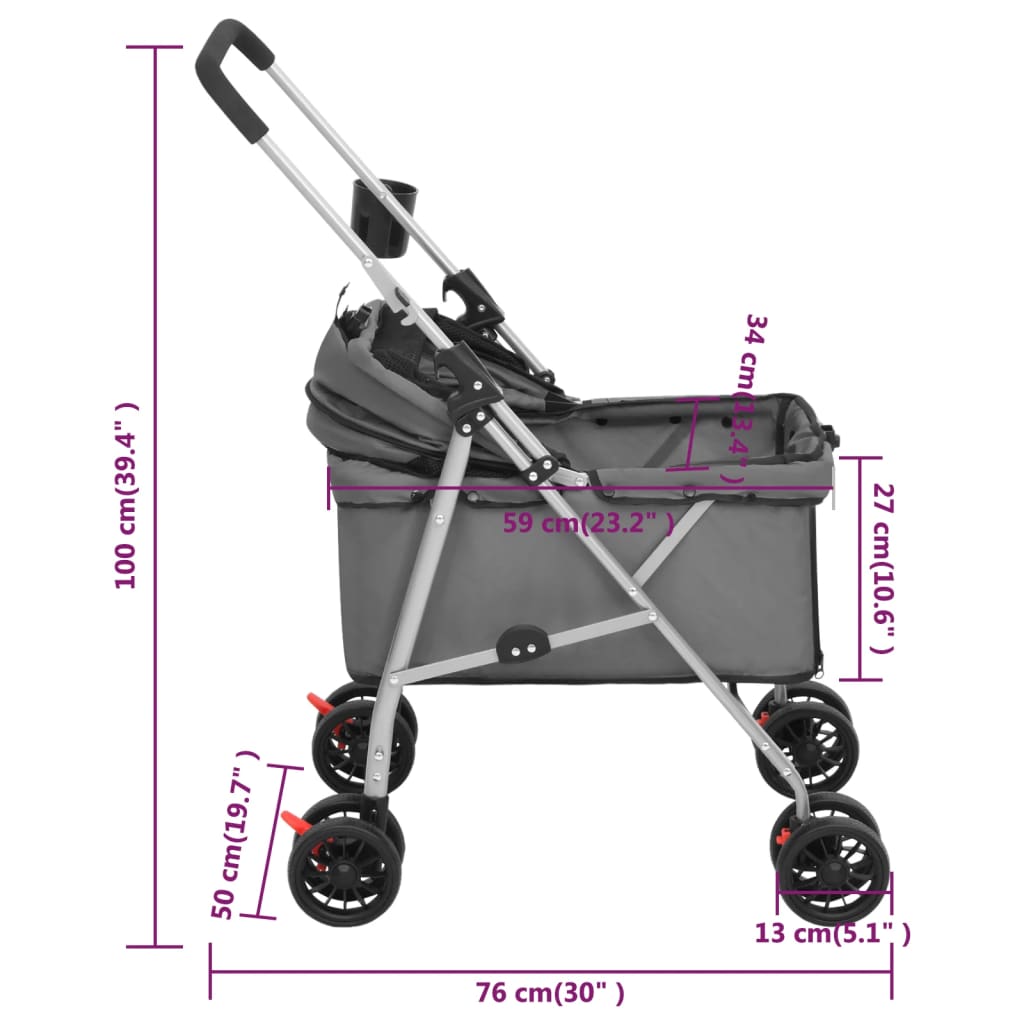 Skládací kočárek pro psa šedý 76x50x100 cm oxfordská tkanina